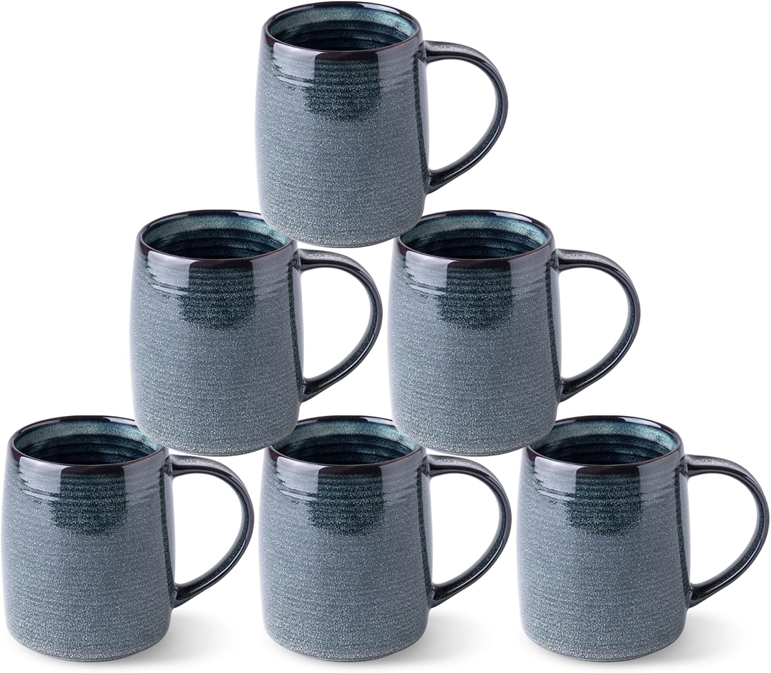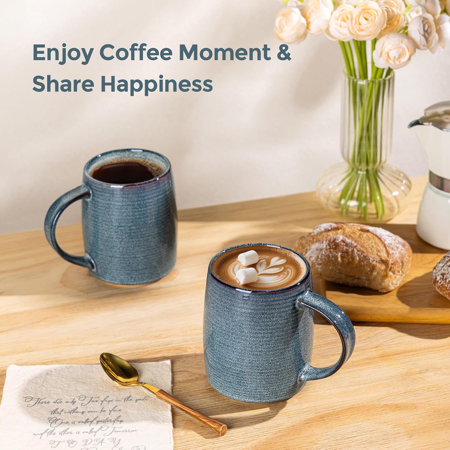 • LARGE HANDLE WITH BEAUTIFUL REACTIVE GLAZE : These coffee mugs features a large open handle that provides a comfortable and secure grip. The handle remains cool even after microwaving, and the beverages stay warm, feature a unique reactive glaze finish, each piece with handcrafted decorative is beautifully individual, adding a touch of sophistication to your table setting