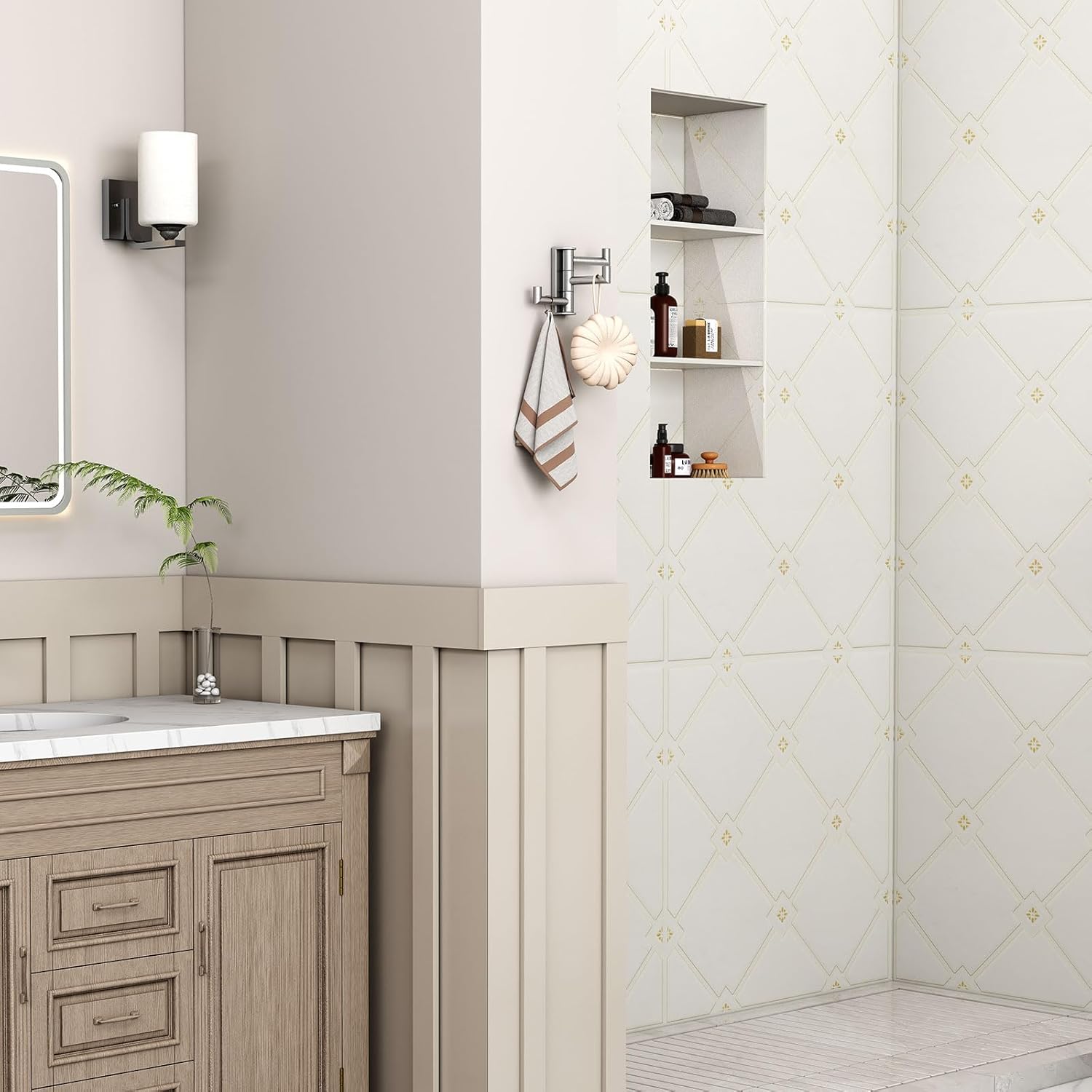 • ADD EXTRA STORAGE: swivel towel hook is a life-efficient accent, with 3 arms allowing for at least 3 items to be hung at once, which not only eliminates clutter but also saves space