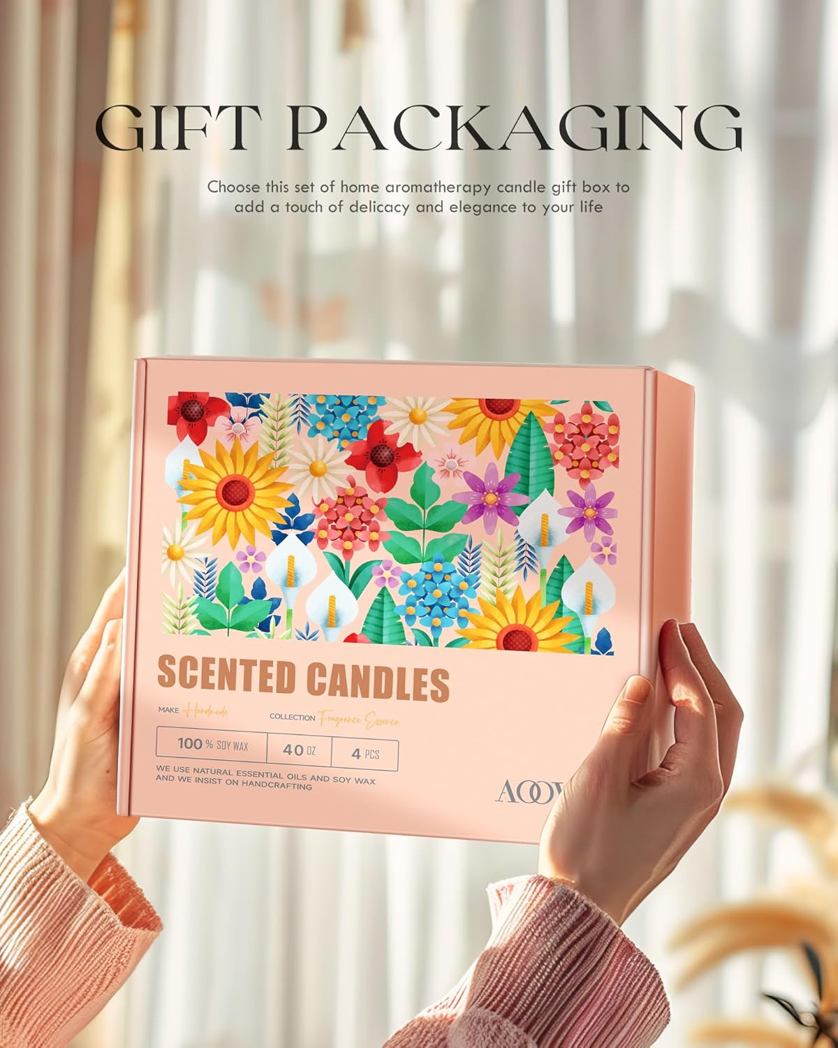 • SCENTED CANDLES GIFT for WOMEN and MEN: The fragrance is prepared by our professional perfumer, and the exquisite packaging box is designed according to the AOOVOO brand, floral fragrance as inspiration, We are confident in the professional craftsmanship of the aromatherapy candles. The scented candles are perfect for Christmas gift, Valentine's Day gift, mothers day gifts for mom, Thanksgiving Day gift, anniversary gift, and Birthdays gifts for women, mom mothers, girlfriends and wife