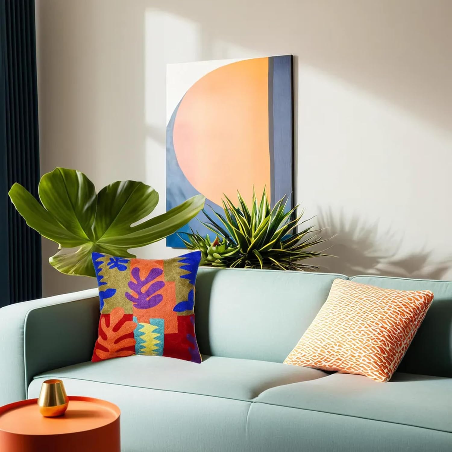 • ❤ Striking Chain Stitch Embroidery: Step into the world of Matisse-inspired design with this vibrant, hand-embroidered abstract accent pillow cover. Featuring bold forms and expressive color, it’s perfect for elevating the style of modern or transitional interiors. Whether you're refreshing a favorite cushion or styling a new space, this eye-catching piece brings artistic flair and versatility to any room or office. Ideal for both indoor and covered outdoor use.