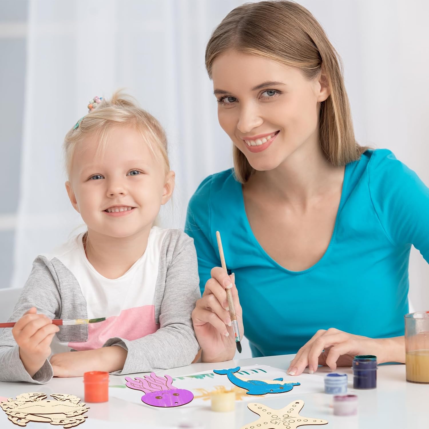 • Package includes:10 different shapes of blank wooden circles for free painting, each shape contains 8 pieces, (Whale Seahorse Octopus Starfish Dolphin Turtle Shark Crab Sea Wooden Shapes blank wooden circles) 80 pieces of cotton, and linen braided rope.