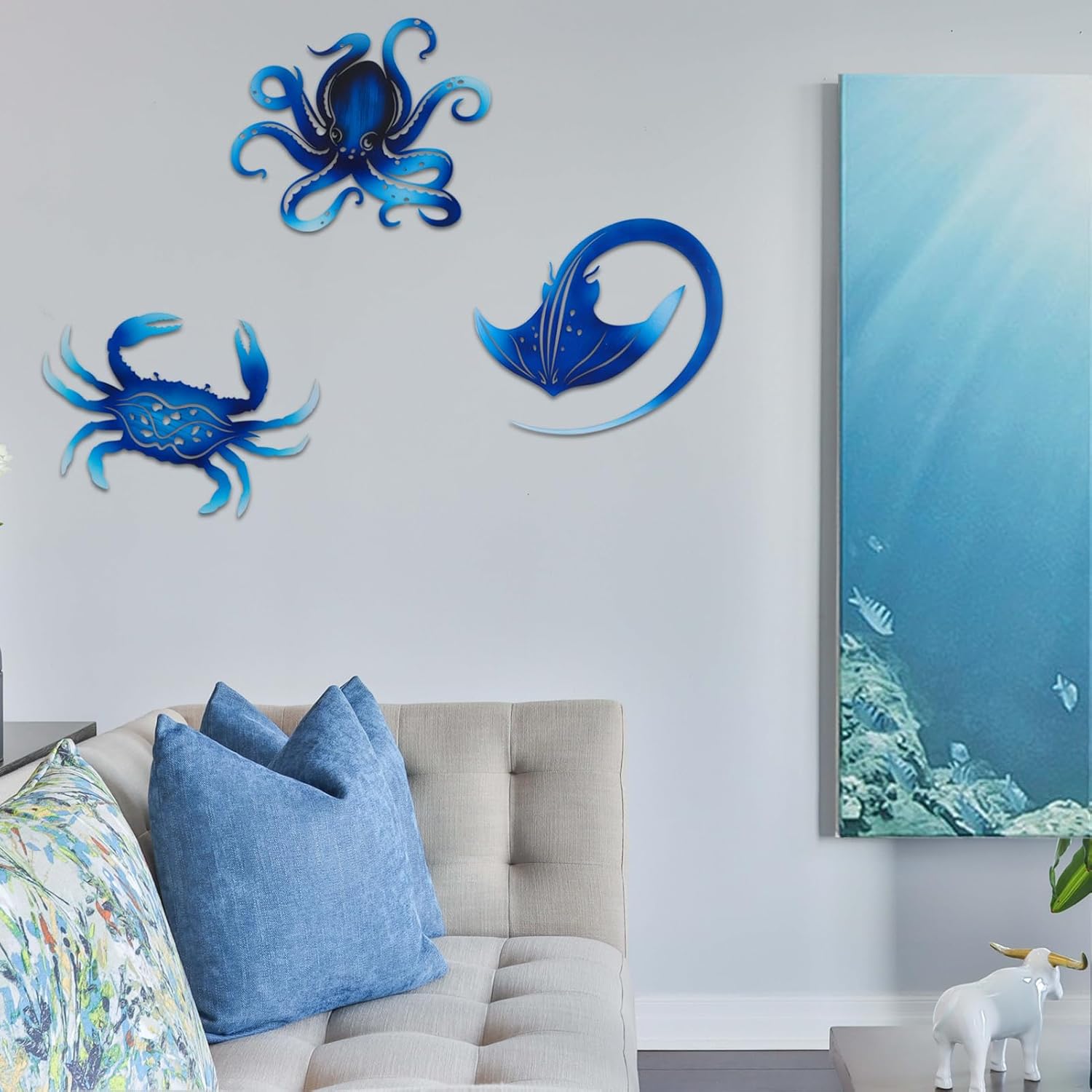 • 【Sea wall decoration】This octopus, manta ray, and crab wall decoration adds a touch of ocean charm to the home environment. The beautiful gradient color design brings you a unique visual experience.