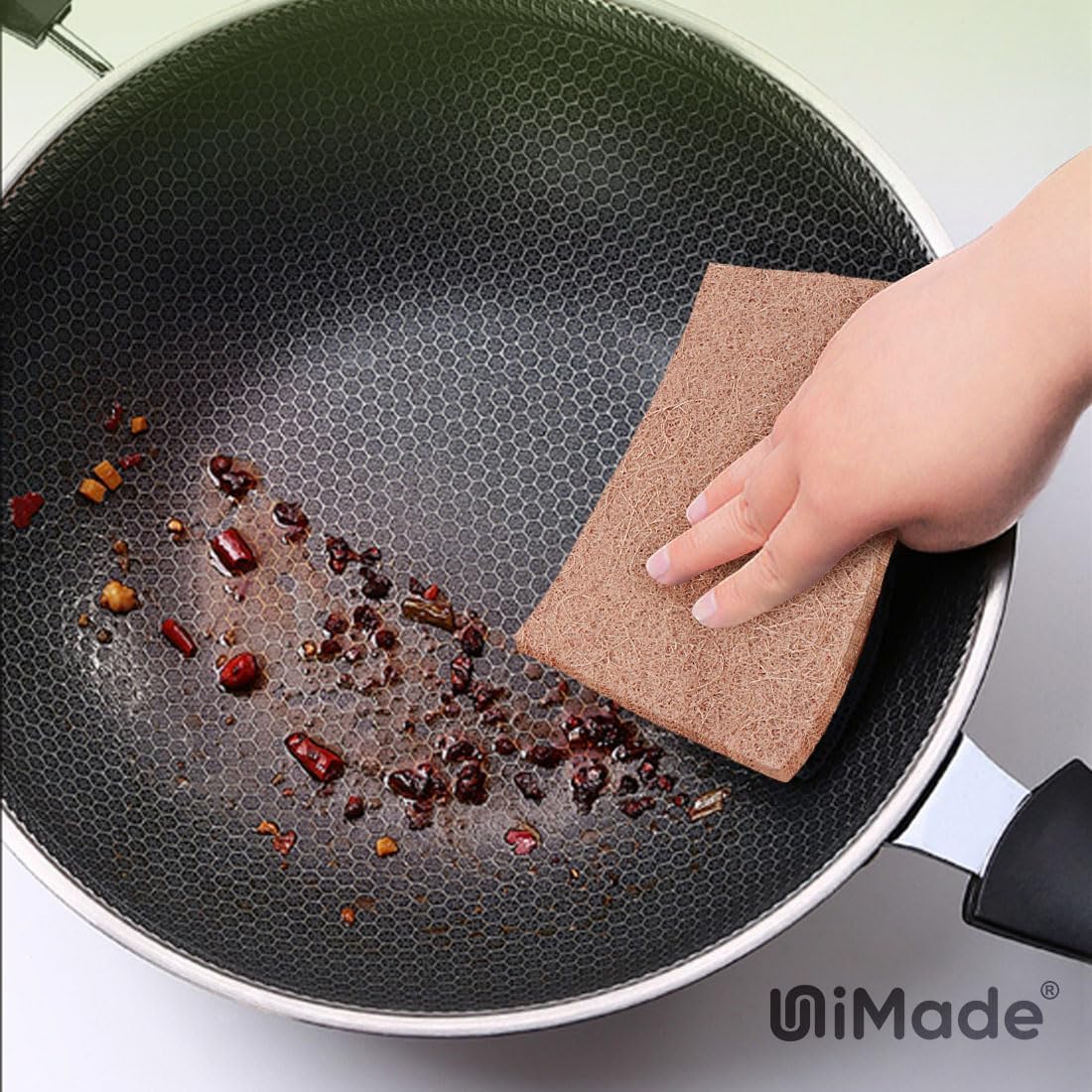 • Powerful Cleaning Ability: These scrubber pads feature a robust abrasive surface made from natural sisal fibers, which excels at removing stains and grime. They can easily clean your dishes, glasses, and non-stick pans without damaging the surface of these items, making them ideal for daily cleaning.