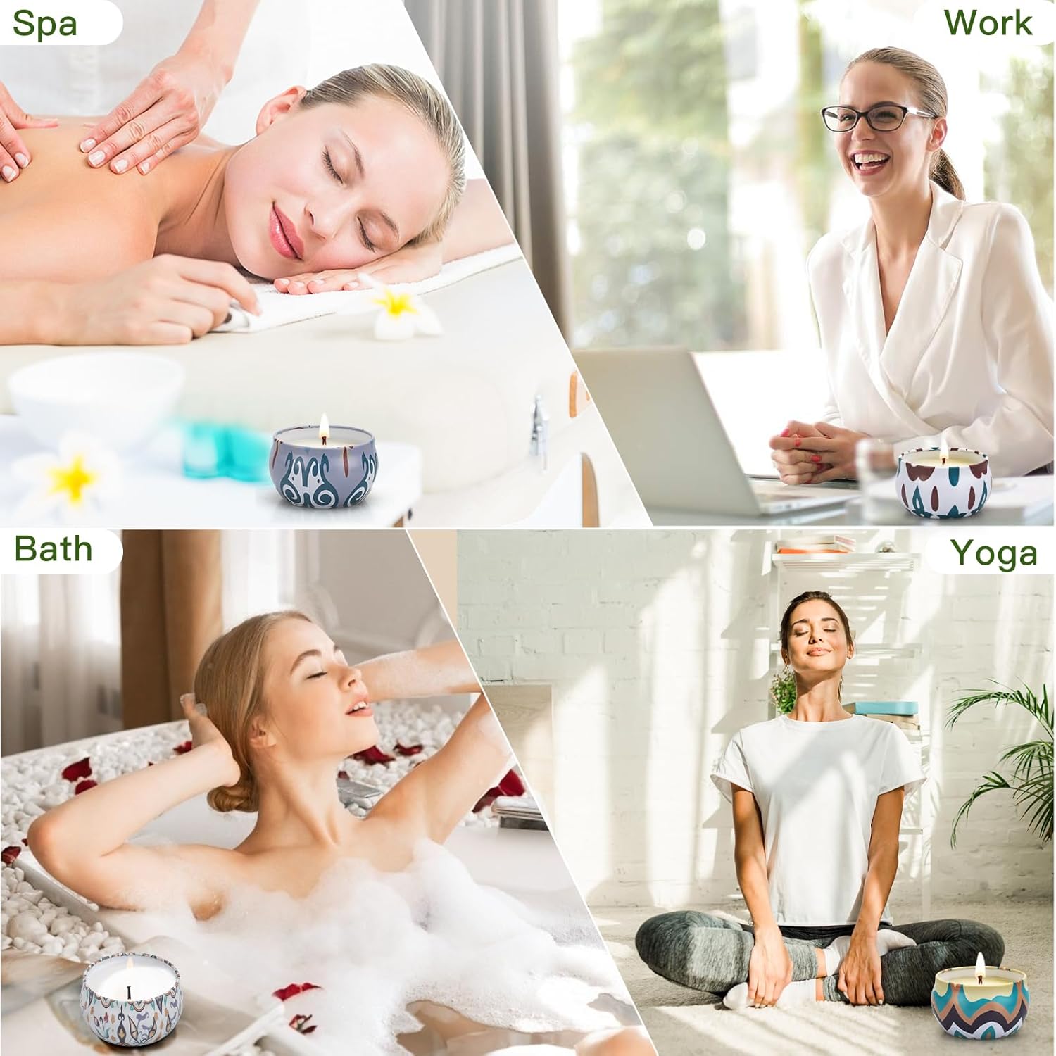 • ✅Soy Wax Candles - Scented candles for home mini gifts set is made from 100% natural soy wax and floral scented candles set with no black smoke. Does not contain any harmful chemicals or additives, a great choice for meditation, yoga, dance, aromatherapy, general relaxation, and stress relief.
