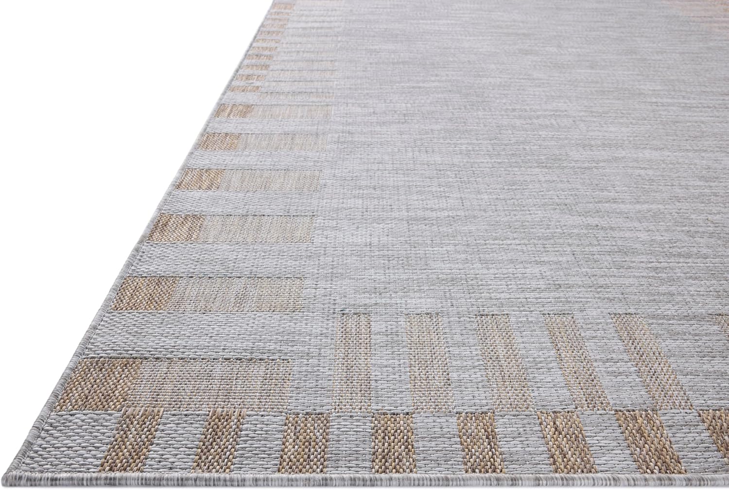 • The Topanga Collection by Amber Lewis x Loloi is an indoor/outdoor area rug with a sophisticated design that resembles natural fiber rugs.