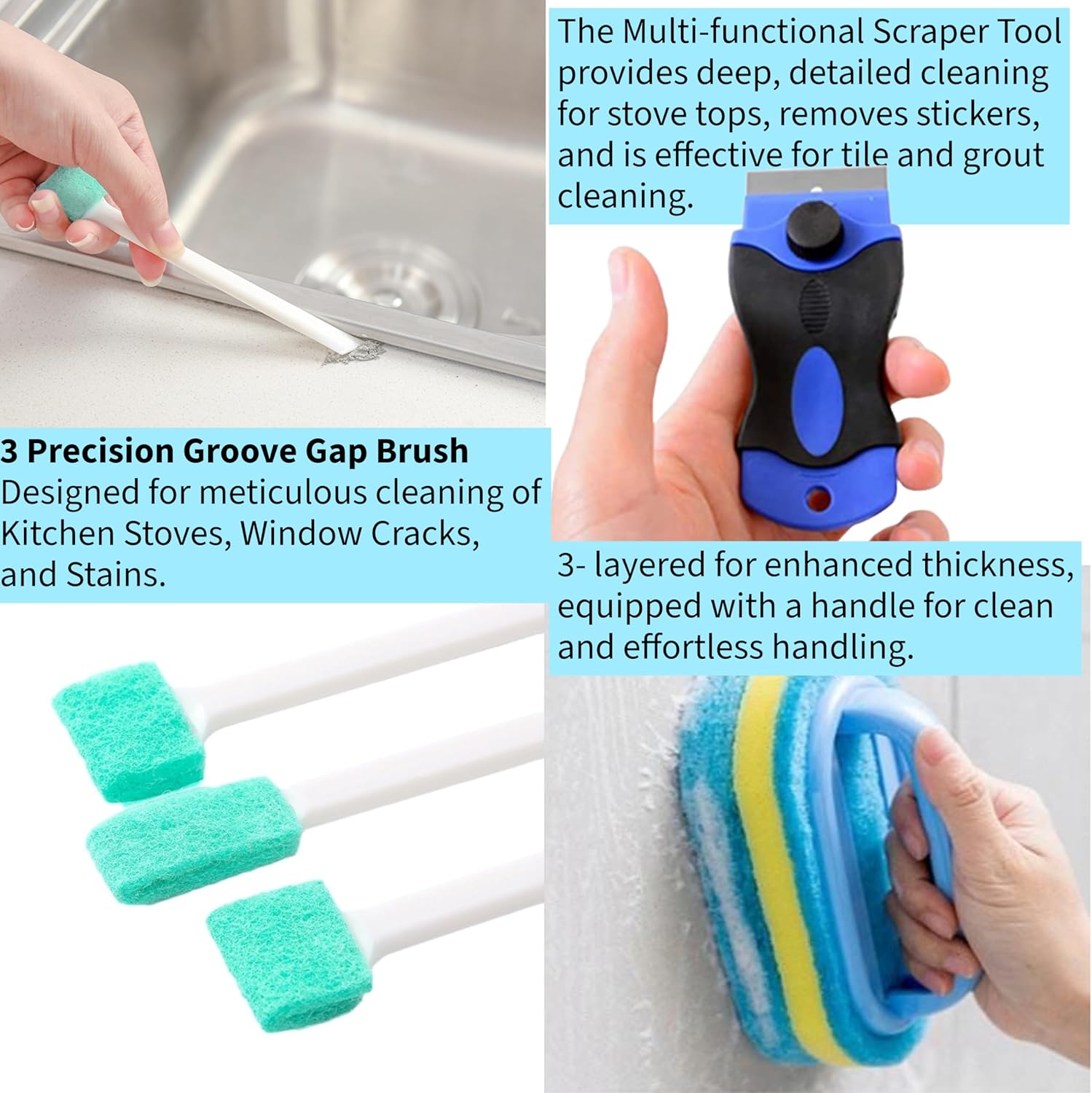 • Non-Scratch Sponges Included: In addition to brushes, this set also includes non-scratch sponges for cleaning delicate surfaces. These damp clean duster sponges are made with a special material that has strong water absorption properties. They are also washable, allowing you to reuse them multiple times, making them a cost-effective cleaning solution.