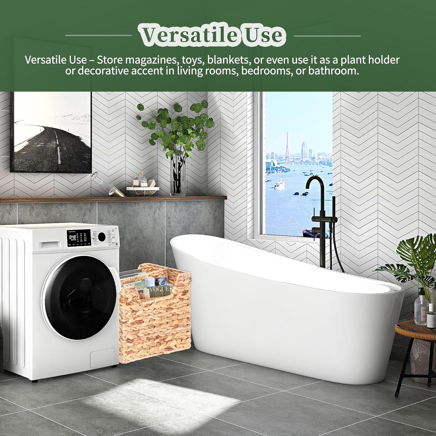 • Versatile Usage - The magazine holder perfects for living rooms, bedrooms, stairs, bathrooms and offices. This magazine rack keeps your space tidy and clutter-free. The natural magazine baskets adds a rustic elegance that complements any room.
