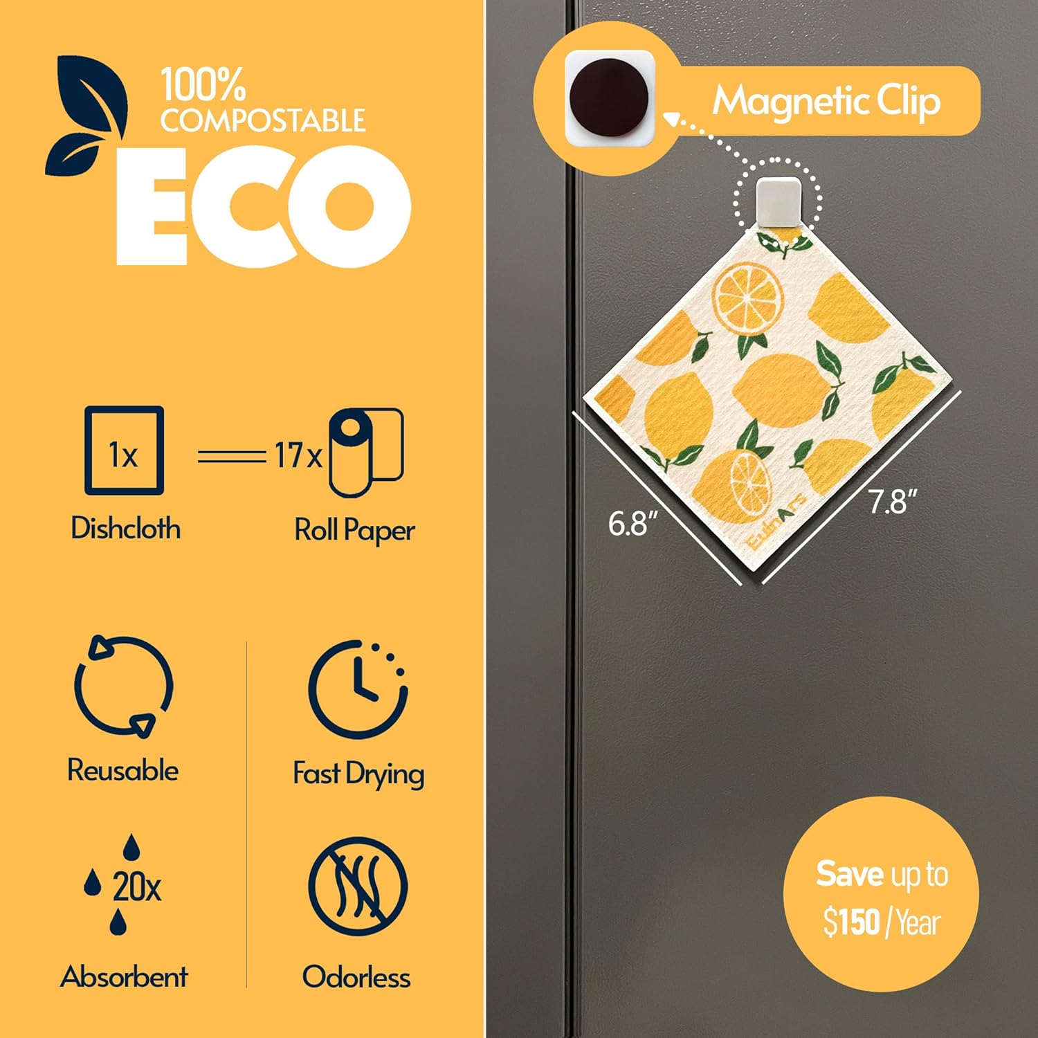Swedish Dishcloths for Kitchen, 8 Pack Reusable Paper Towels with Clips, Non-Scratch Swedish Dish Towels, Super Absorbent Cellulose Sponge Cloths, Eco Friendly Gifts