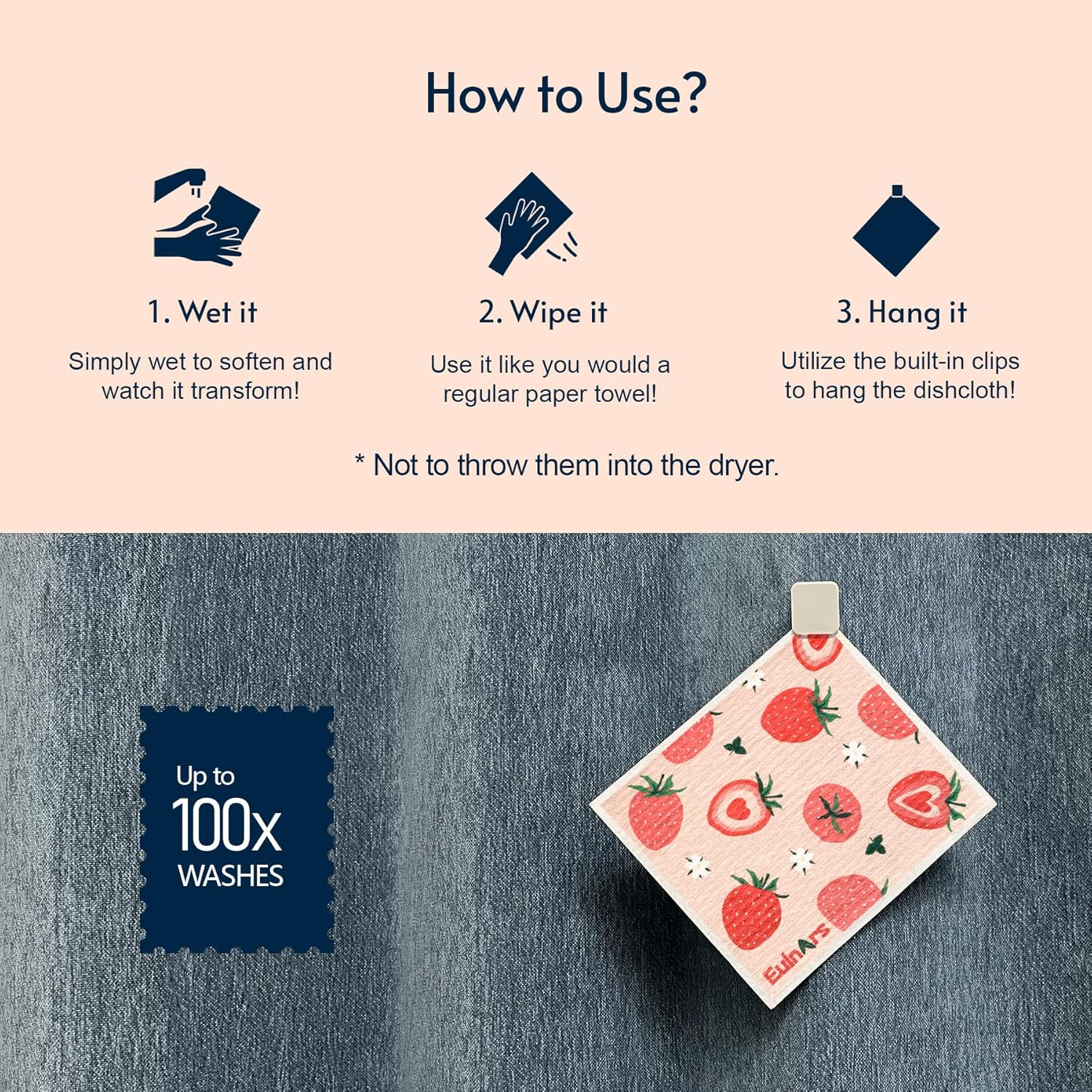 • Washable and Resuable: Tested to be reusable up to 200 times, our swedish dish rags for washing dishes can replace up to 17 rolls of paper towels. Affordable, durable, and easy to care for, they offer a long-lasting alternative to disposable paper towels