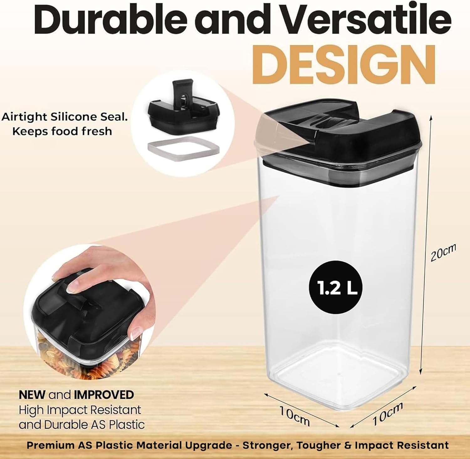 • 【 HIGH-QUALITY BPA-FREE PLASTIC WITH PREMIUM AS MATERIAL UPGRADE 】Made from premium, BPA-free plastic, these food storage containers and pantry storage containers offer a durable, reliable solution for any kitchen. Now further enhanced with advanced AS plastic instead of standard PS, they provide superior durability, toughness, and impact resistance. This upgrade ensures your containers withstand drops, resist cracks, and keep your food safely stored with confidence—delivering long-lasting quality without changing container size or capacity.