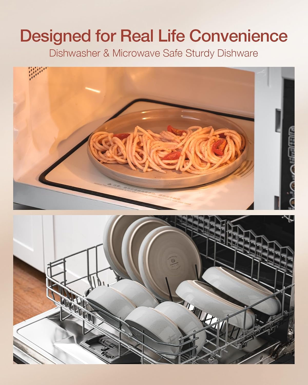 • 【DISHWASHER AND MICROWAVE SAFE】Our dishes have passed microwave and dishwasher safe testing at internationally accredited laboratories. Each plate and bowl is dishwasher safe and microwave safe.