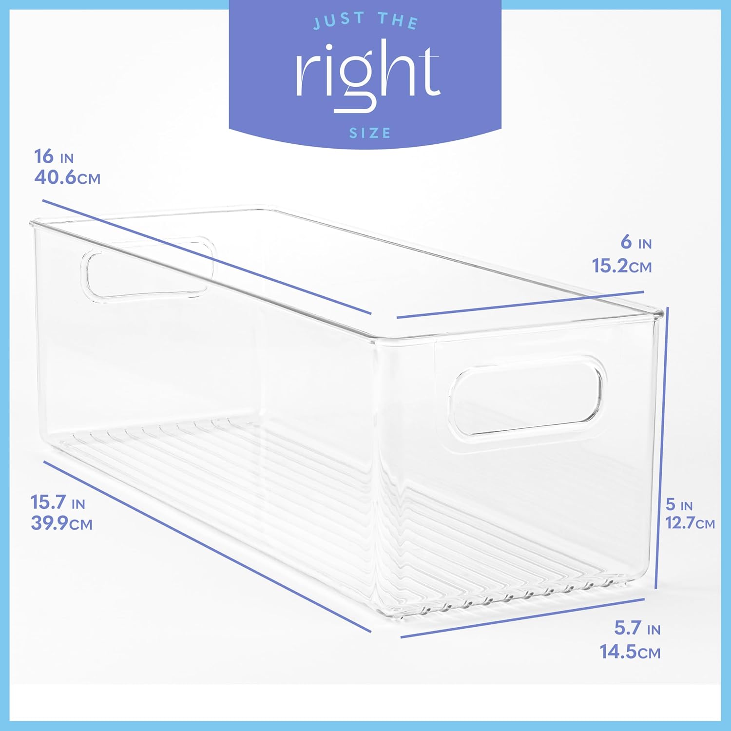 Plastic Food Storage 6 Pack Clear Container Bin with Handles for Organizing Kitchen, Pantry, Refrigerator, Freezer, Pantry, Cabinet, Closet, Bathroom. 16”x6”x5”