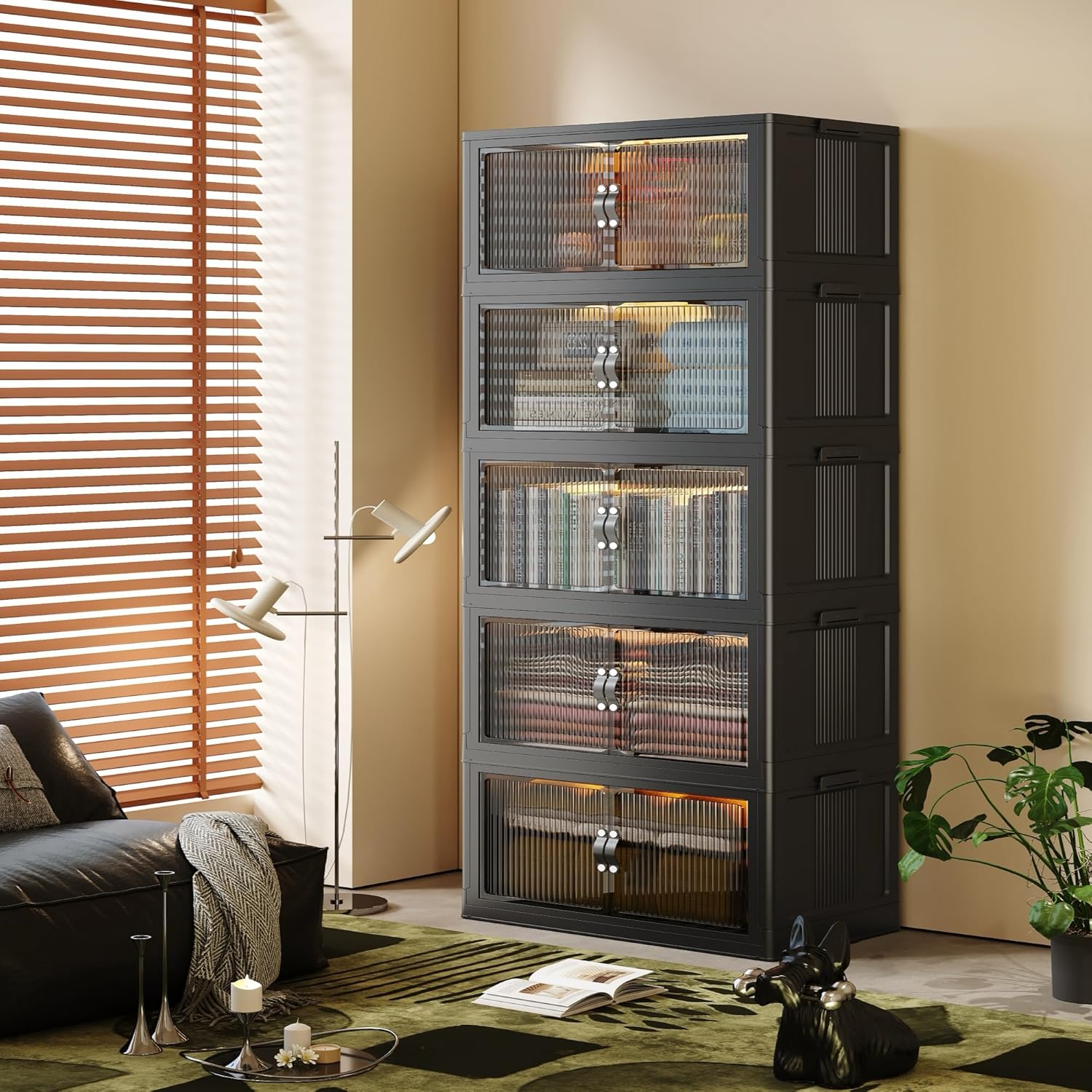 SAILUN 136Gal/543Qt Stackable Storage Bins Folding Collapsible Storage Bins with Lid, Closet Organizers and Storage, Storage Box with Door Black 26" W x 17" D x 71" H