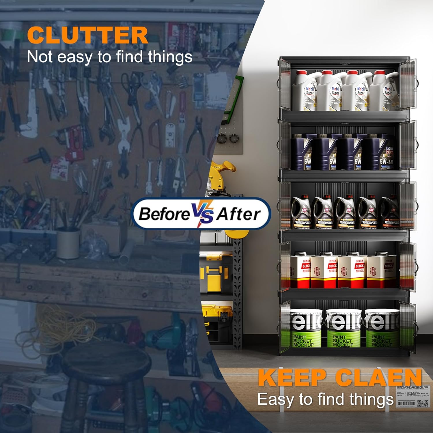 • ♥【Very easy, stackable 】 - No tools are required for installation. The notches on the stackable storage bins are designed to make them more securely stacked without tipping over, and flip the snaps to stack them together. It can be easily folded away when not in use, saving space. This makes it ideal for use in small spaces.