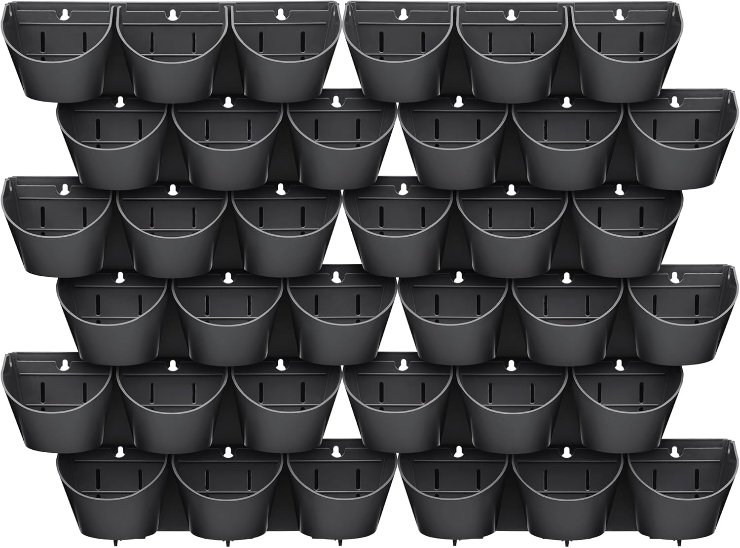 Worth Garden Upgraded 12 Sets (36-Pocket) Self Watering Stackable Vertical Planters - Wall Mounted Plastic Plant Grow Pots fr Strawberries Flowers Herbs - Indoor Outdoor Green Wall Decoration (Black)