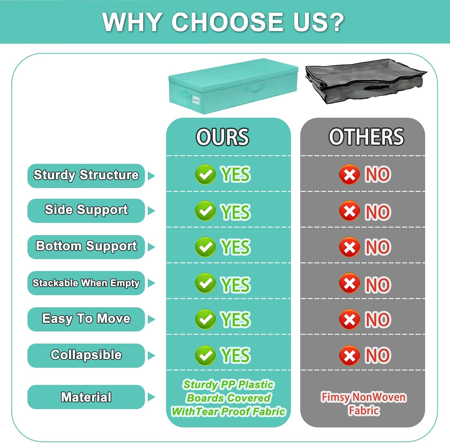 • 👍STURDY STRUCTURE & STURDY HANDLES: 3 Reinforced sewn-in handles make it easy maneuverability and convenient for you to carry and pull out from under the bed; handy bins make excellent blanket organizers and storage; Lasts longer than underbed storage containers plastic; Keep your bedroom neat and tidy with storage bins with lids that fit your room's existing decor and theme