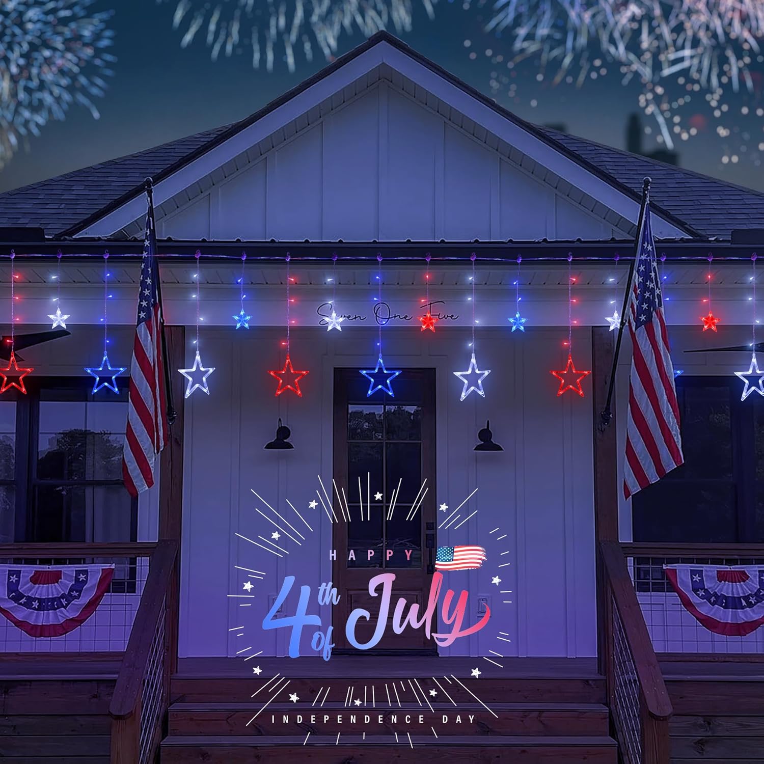 • Widely Used:The Patriotic star Icicle Lights are Connectable,could be extended to 3chains to 24.6FT.It is long enough decor for 4th of July Independence Day, Labor Day, President's Day, Memorial Day, Veterans Day, American parties and many other celebration occasions decorative.