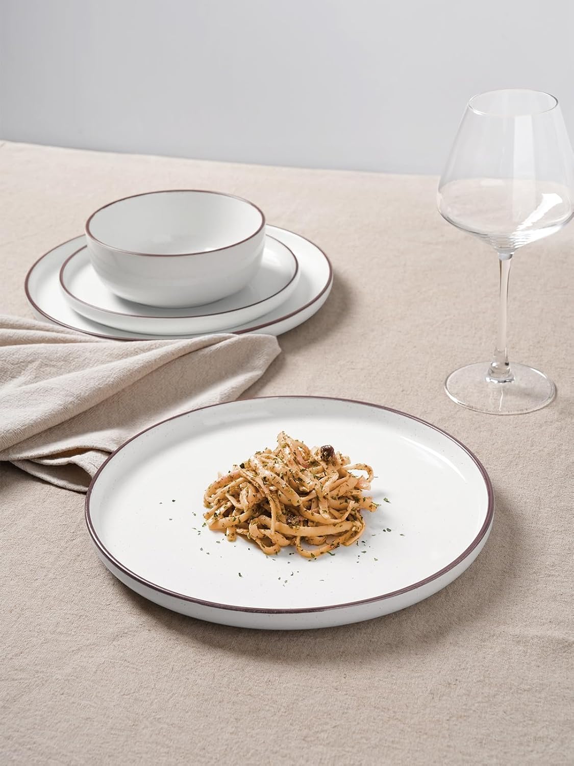 • 【FOOD GRADE NATURAL GLAZE】All of our dinnerware sets are made of food grade glaze. You can safely use them to serve steaks, salads or desserts, no need to worry about any harmful substances leaching into the food.