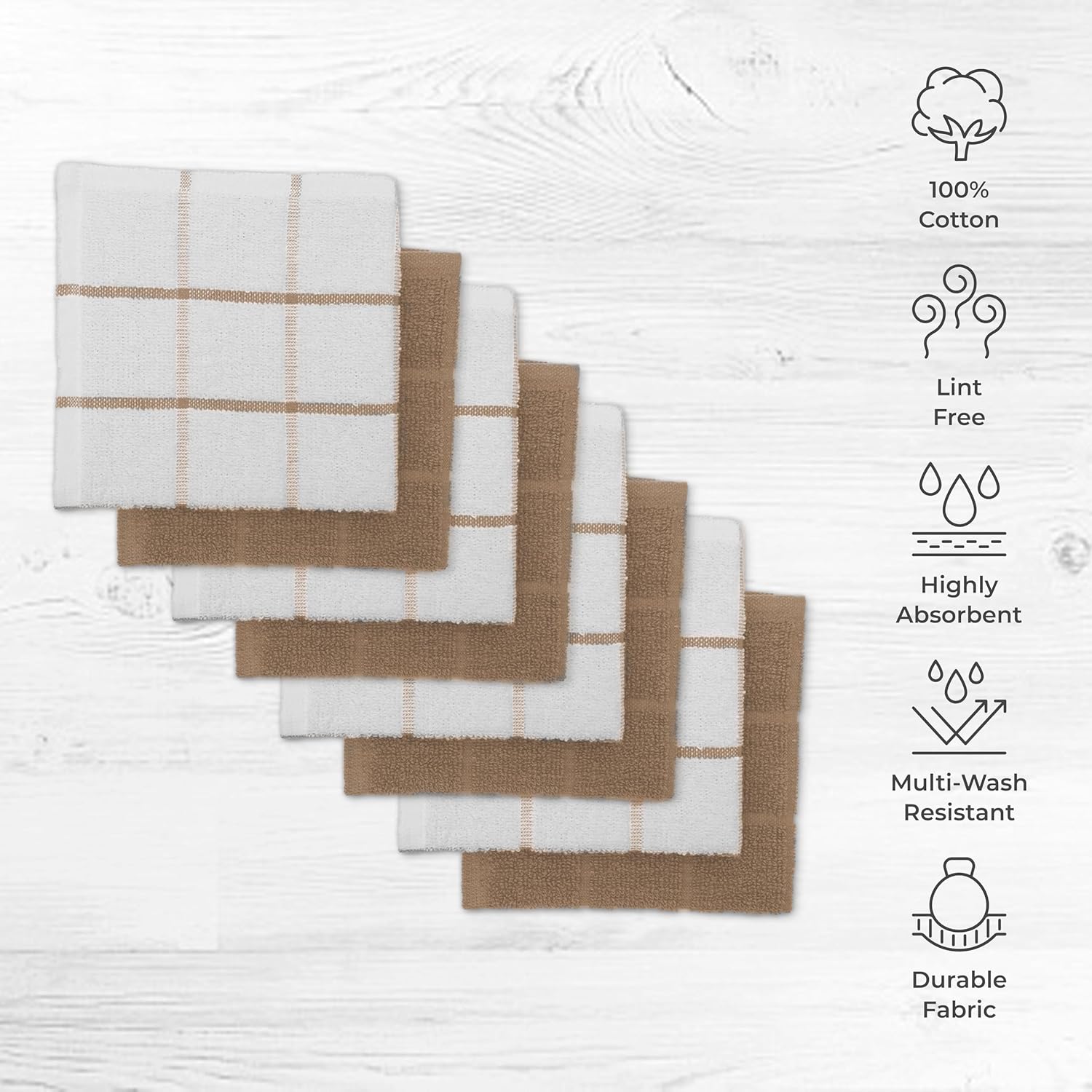 100% Cotton Terry Dish Cloth & Dish Towel, 6 Pack, Super Soft and Absorbent Kitchen Towels, Perfect for Kitchen Cleaning and Dish Washing (TAN (Solid and Checks) 8 Pack)