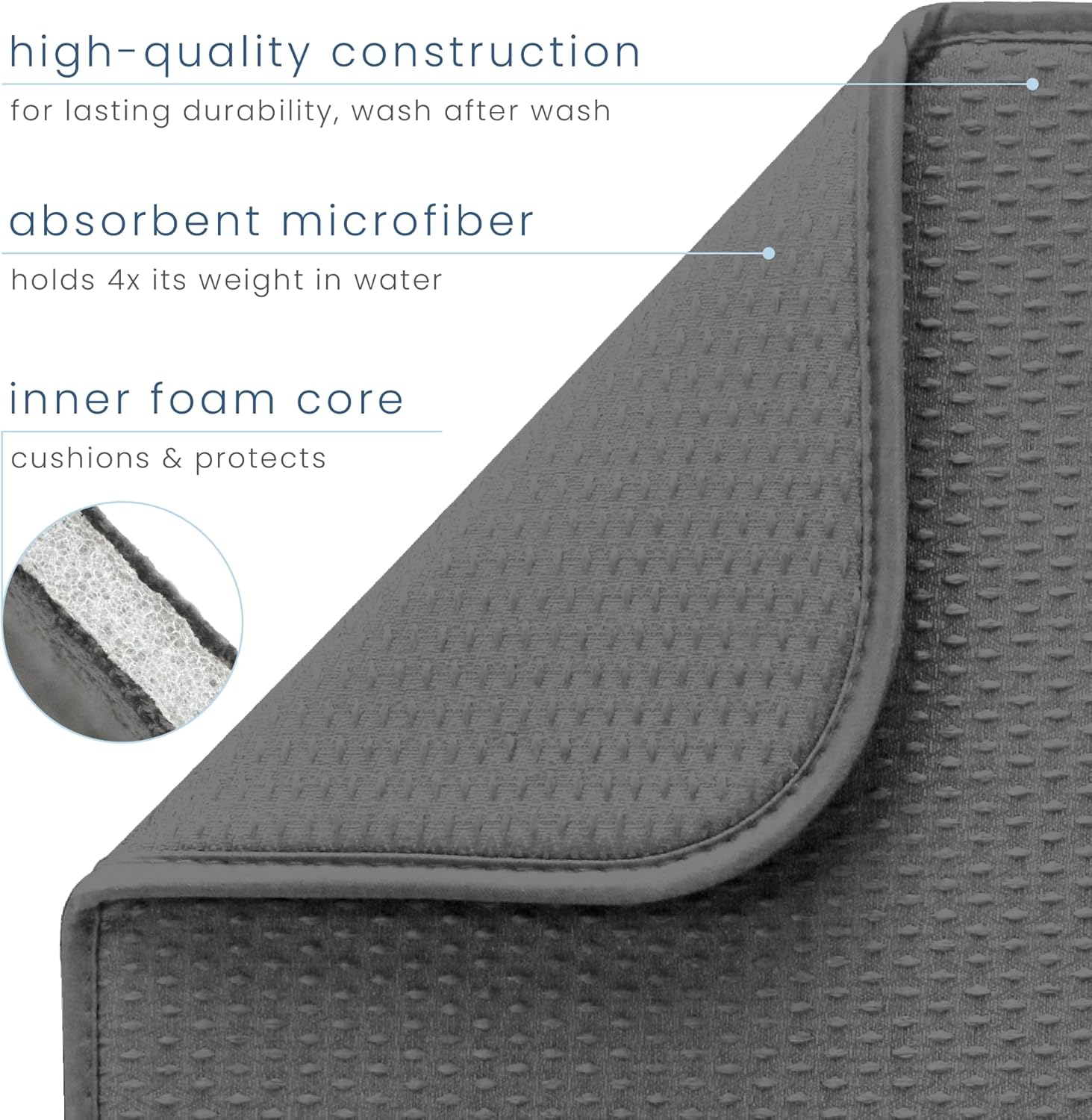 • One Envision Home by S&T INC. Microfiber Dish Dry Mat XL measuring 18 in. x 24 in.; kitchen mat for countertop absorbs up to 4 times its weight in water to keep your countertop dry, unlike a silicone dish drying mat