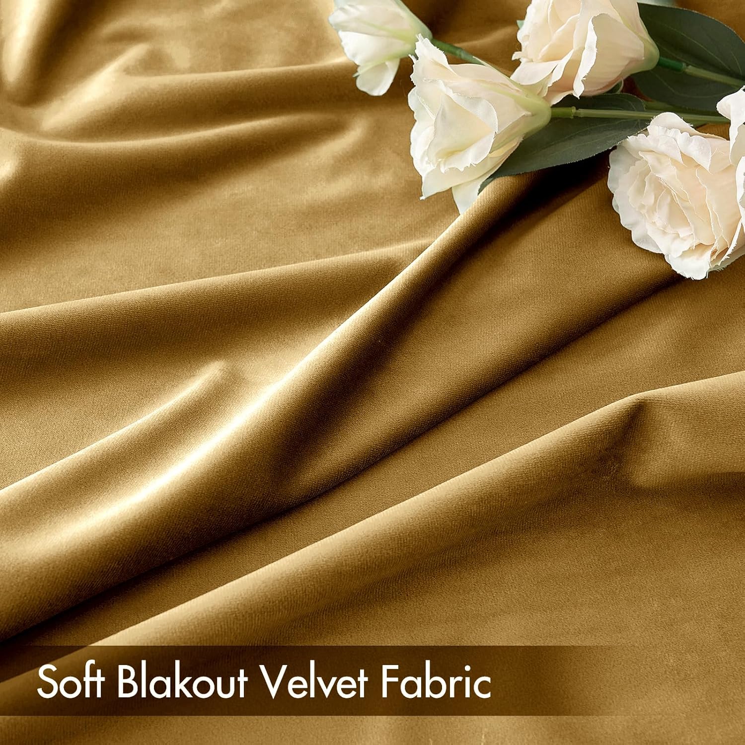 MIULEE Gold Velvet Curtains Thermal Insulated Blackout Curtain Drapes for Bedroom Living Room Darkening 96 Inches Long Curtains Panels Rod Pocket Set of 2