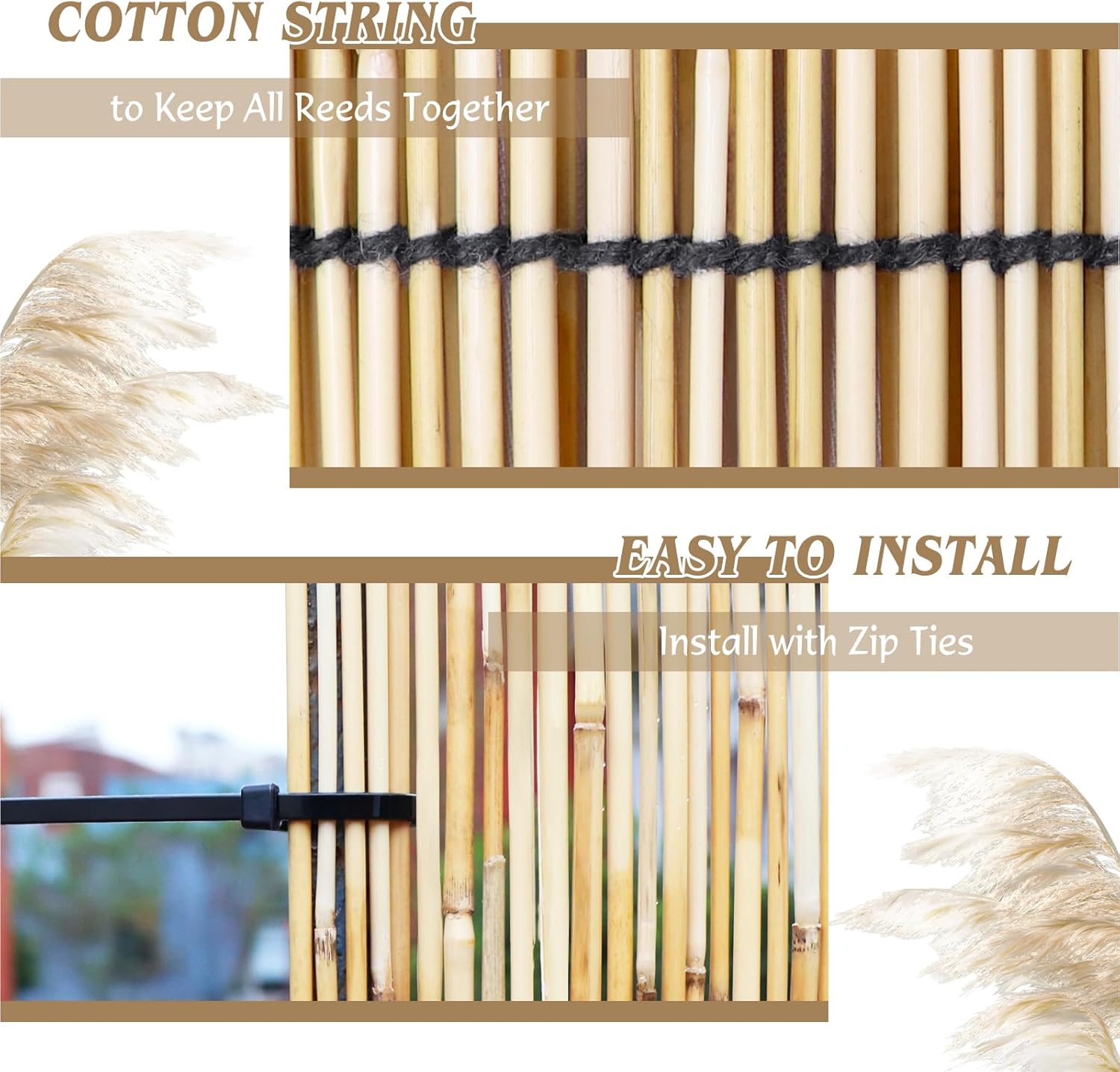 • 【FRIENDLY NOTES】- Please note: As these fences are natural-reed- made, the color, width or length of screen roll will slightly vary.Reed screen curtain might be slight burs or spots on the surface of natural reed, please install with care.