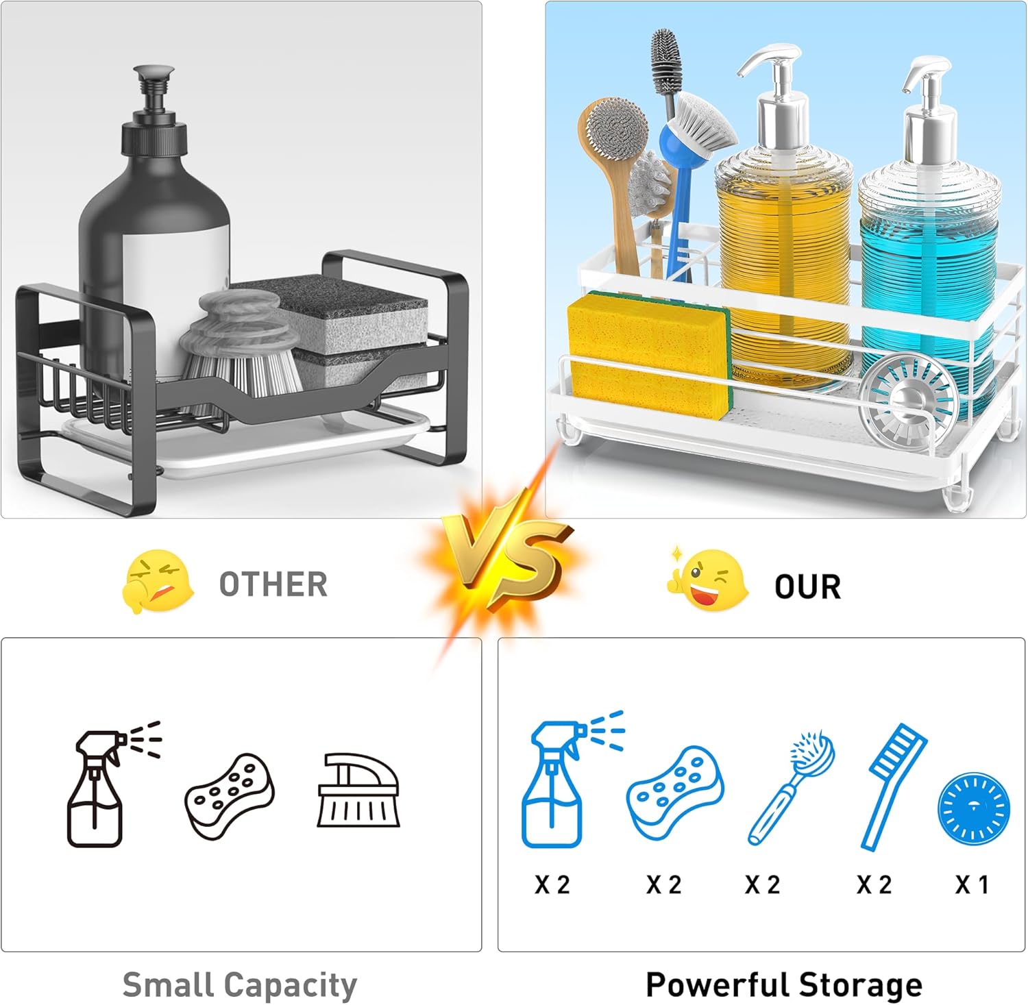 • 【MORE STORAGE SPACE 】Compared to other kitchen sink caddy CISILY sponge holder expands to 5.3 inches wide and 9.49 inches long, enhancing its kitchen organization function, and allowing flexible placement of sponges, dish soap, soap dispensers, brushes, sink plugs and more. Make the most of every inch of space and make your kitchen look cleaner.