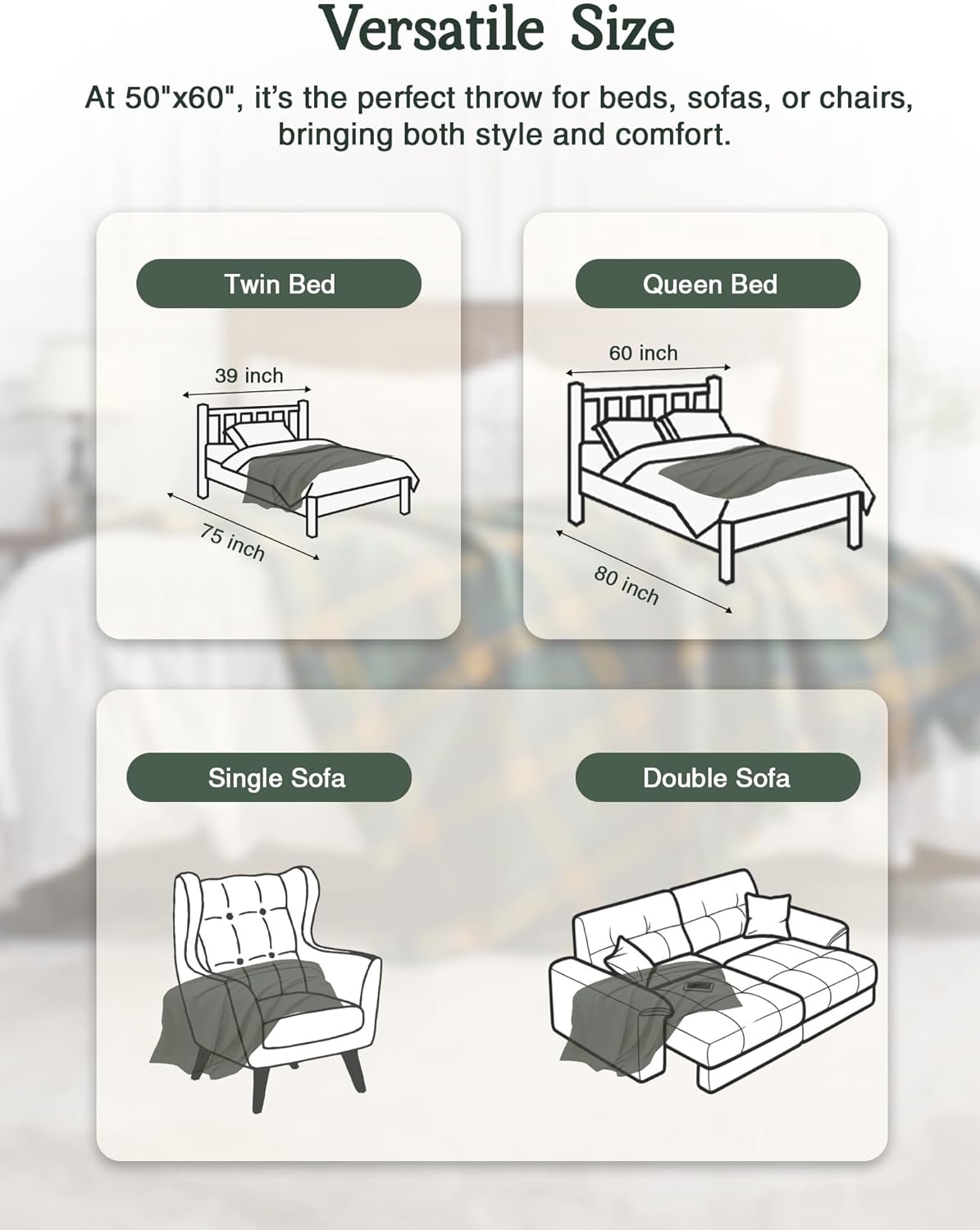 • Perfect Fusion of Artistry & Utility: This blanket seamlessly blends the art of weaving with a distinctive green checkered pattern. It offers a level of softness and delicacy beyond ordinary blankets. Unveiling unique patterns and textures, it instantly revitalizes your room.