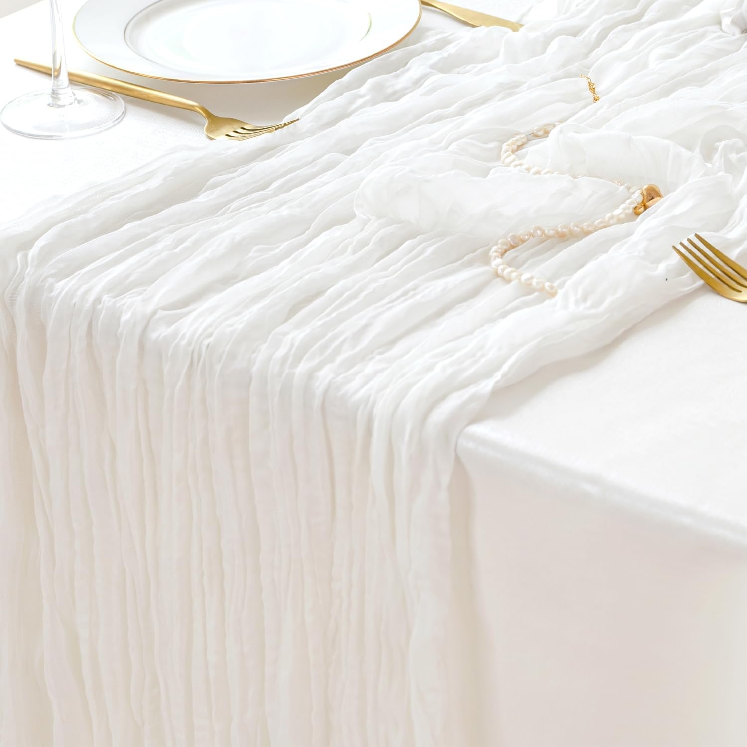 Sioloc Ivory White Cream Cheesecloth Table Runner Fall Autumn Decor for Home 10ft Table Cloth for Tea Wedding Birthday Party Baby Bridal Shower Halloween Thanksgiving