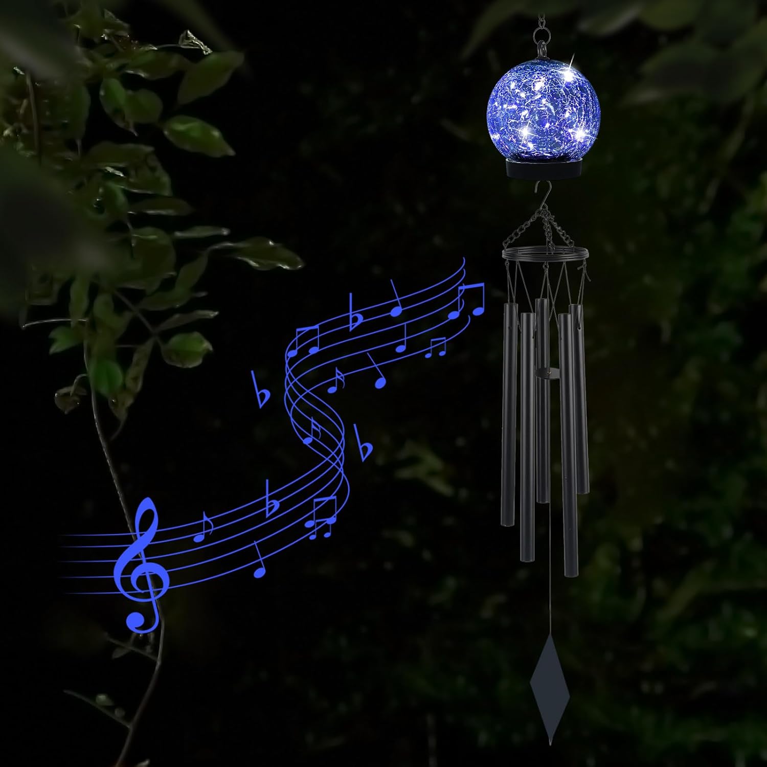 • 【Pretty Garden Décor】: The unique solar wind chimes are designed to add a refreshing and stylish touch to your outdoor. The hanging cracked glass lantern is like a beautiful crystal ball, providing blue light and a romantic atmosphere for your yard. It is not only a hanging wind chime for outside but also a solar garden light decor.