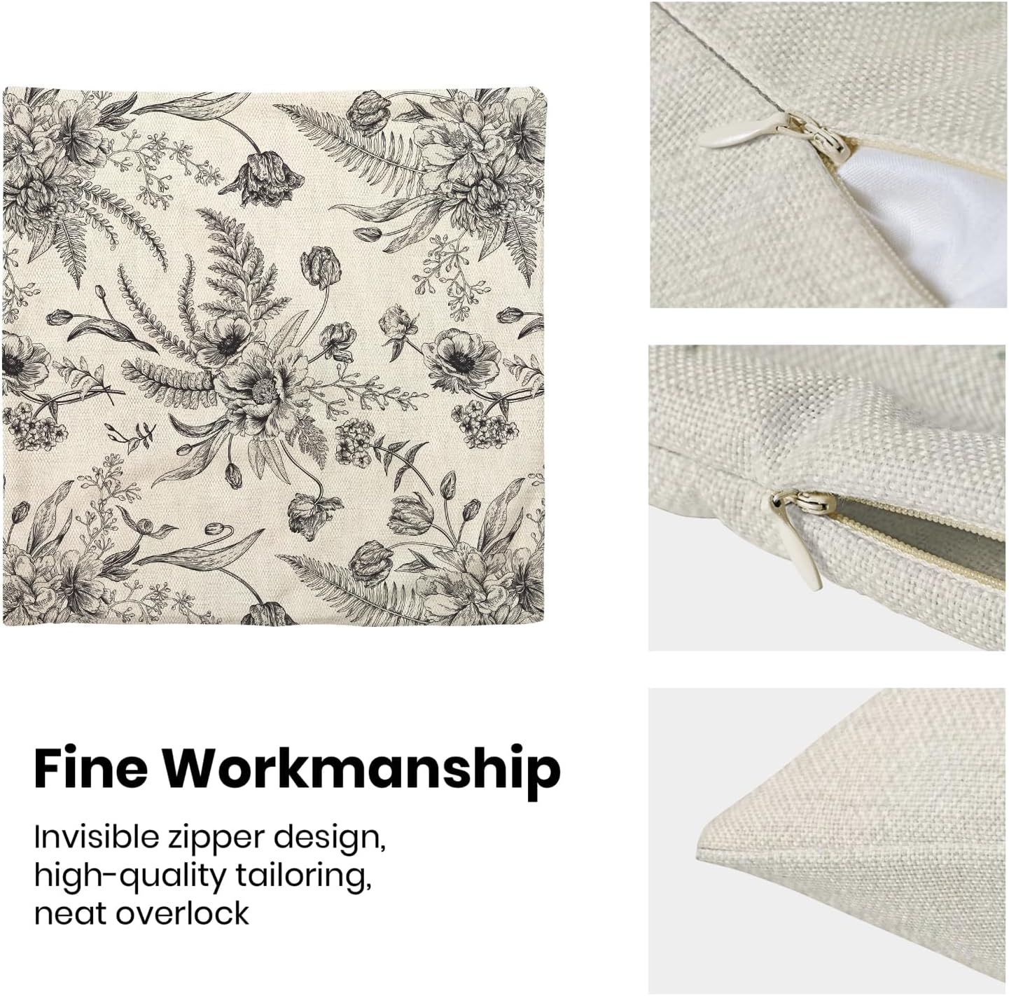 • 【Spring Pillow Covers】 Our Chinoiserie floral throw pillow covers 20x20 inch are made of excellent breathable polyester cotton fabric. The Black and White floral decorative pillow covers is sturdy, soft and skin-friendly. The plant outdoor pillow covers adopt exquisite edging technology and four sides of our floral pillow covers are sewn firmly, which is not easy to open the line.