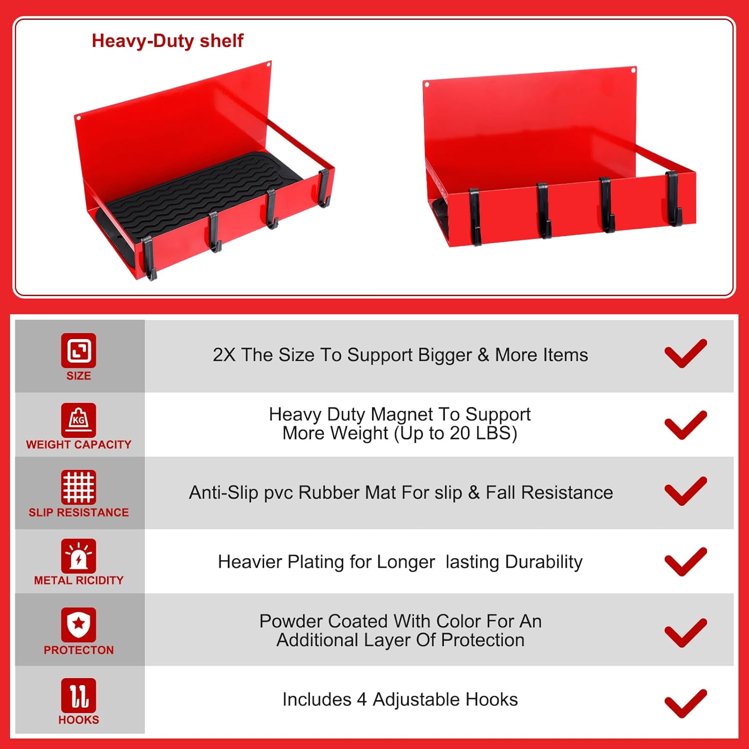 • Easy to Use for Saving Space: our magnetic shelves do not need drilling or installation, you just need to open the package, put the non slip pad on the shelf, and then secure it to the metal surface; The compact and efficient design of this 12 x 6 x 6 inches magnetic tool box serves as a space saving solution, helping keep your working area neat and decluttered