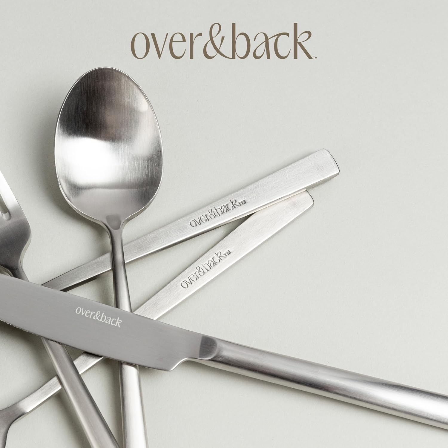 over&back 20pc Modern Flatware Cutlery Set - Comes with 4 Dinner Forks, 4 Salad Forks, 4 Dinner Knives, 4 Dinner Spoons, and 4 Teaspoons - 18/8 Stainless Steel - Dishwasher-Safe - Brushed Stainless