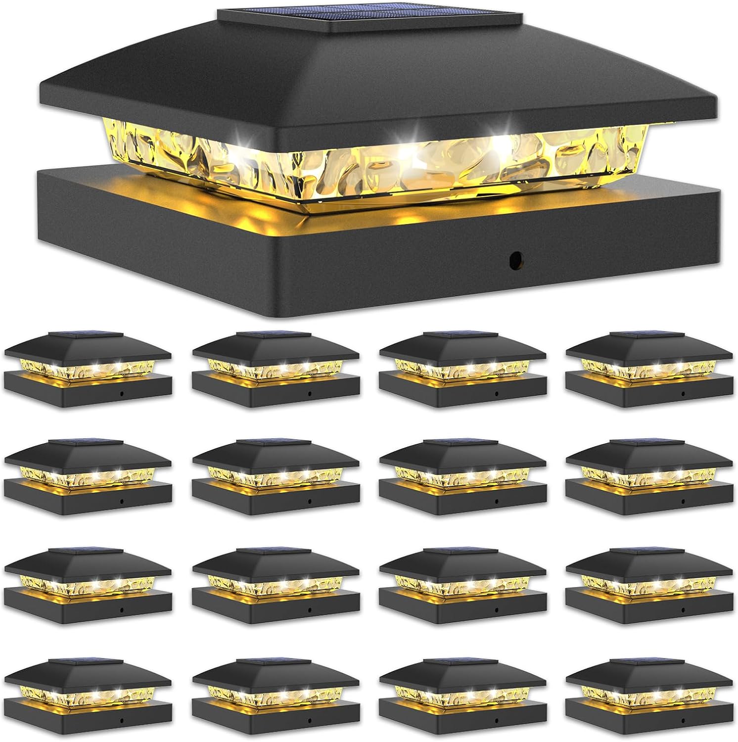 • 【Fit for post size】Our 4x4 solar deck post cap lights come in various sizes. It is suitable for 4x4 wooden post, 4x4 vinyl post. It can illuminating fences, decks, mailaboxes, making them a versatile and stylish addition to any outdoor space