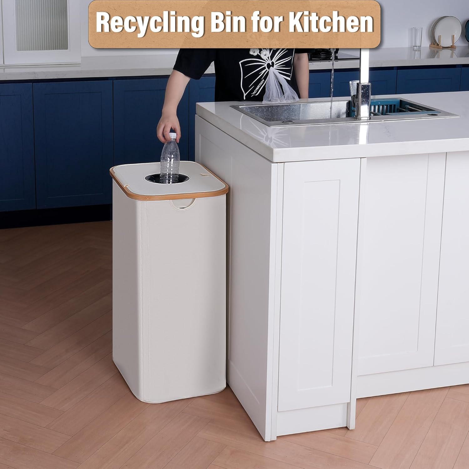 • 【Design with lid and bamboo handle】The recycling bin for kitchen has a collection hole, and you can easily put in empty bottles without opening the lid. The recycling bin for kitchen is made of Oxford cloth and bamboo basket, using environmentally friendly materials, lightweight, thick Oxford cloth is durable, not easy to damage, lightweight, breathable fabric, easy to clean.