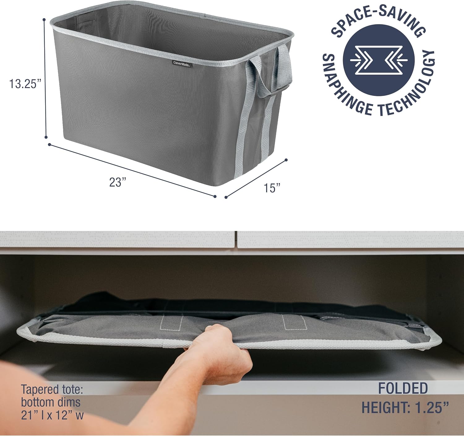 CleverMade Collapsible Laundry Basket Hamper - Shadow Stone Gray 2-Pack 60L - Space Saving Storage Organizer with Handles Foldable Home Organization