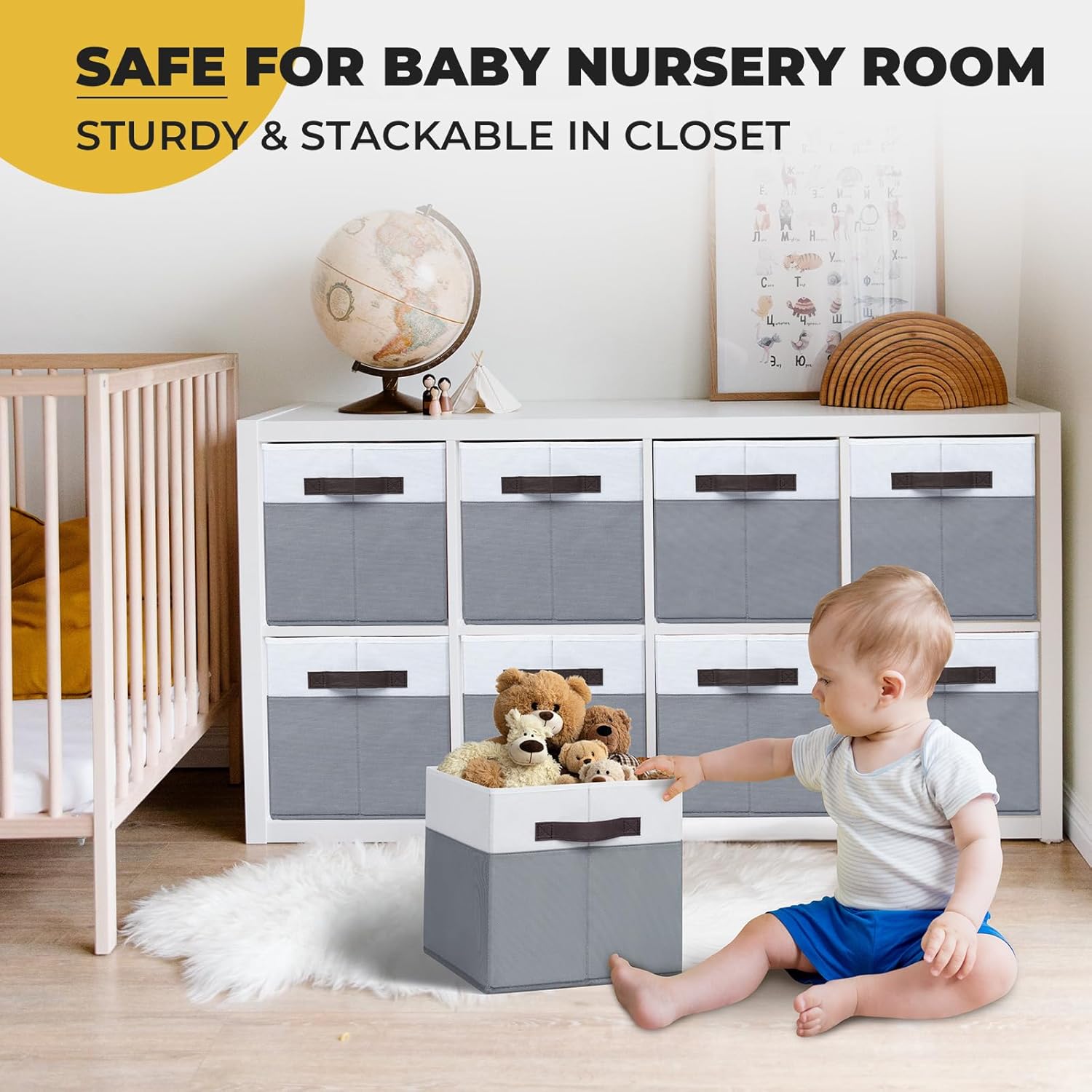 • 【𝙉𝙊 𝙈𝙊𝙍𝙀 𝙒𝙊𝙍𝙍𝙄𝙀𝙎 𝘼𝙗𝙤𝙪𝙩 𝙌𝙪𝙖𝙡𝙞𝙩𝙮 𝙖𝙣𝙙 𝙎𝙢𝙚𝙡𝙡𝙨】 Our cube storage bins are made of tear-resistant fabric with odorless plastic panels, ensuring reliable durability and security for baby nursery organization. Each cube basket has two strong handles, capable of holding up to 20 lbs heavy supplies.