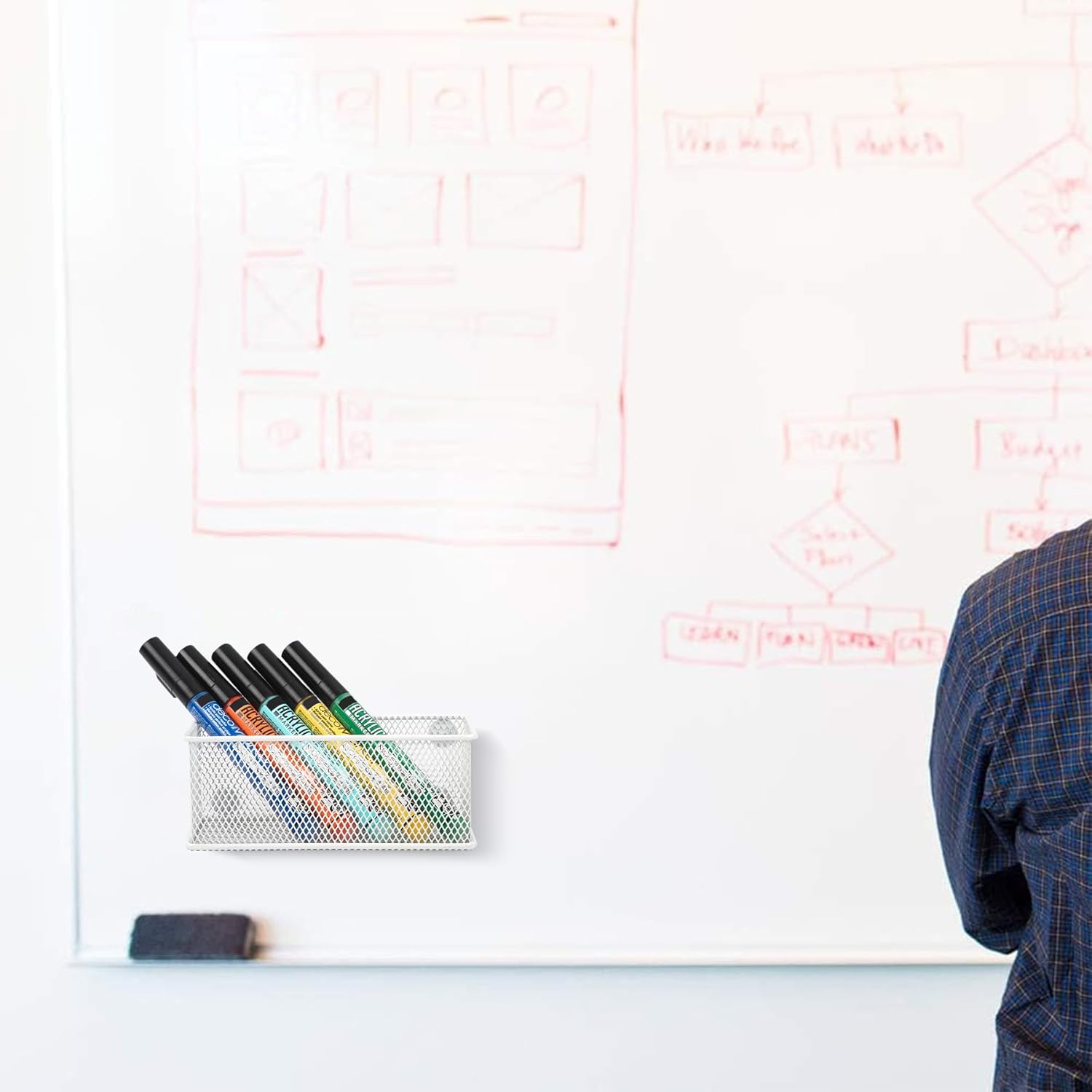 • EXCELLENT ORGANIZER - The magnetic storage basket is suitable for holding whiteboard accessories like dry erase markers or pens to keep your office or home uncluttered and tidy