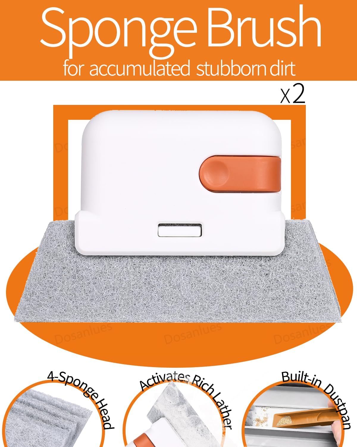 Groove Gap Cleaner Tools Set, 8 Pcs Hand-held 2 Brush with Dustpan&tweezer + 2 Sponge Brush with Dustpan + 2 Replacement Sponges +2 crevice brushes for Sliding Door, Sill, Tile Lines, Track, Car Vents