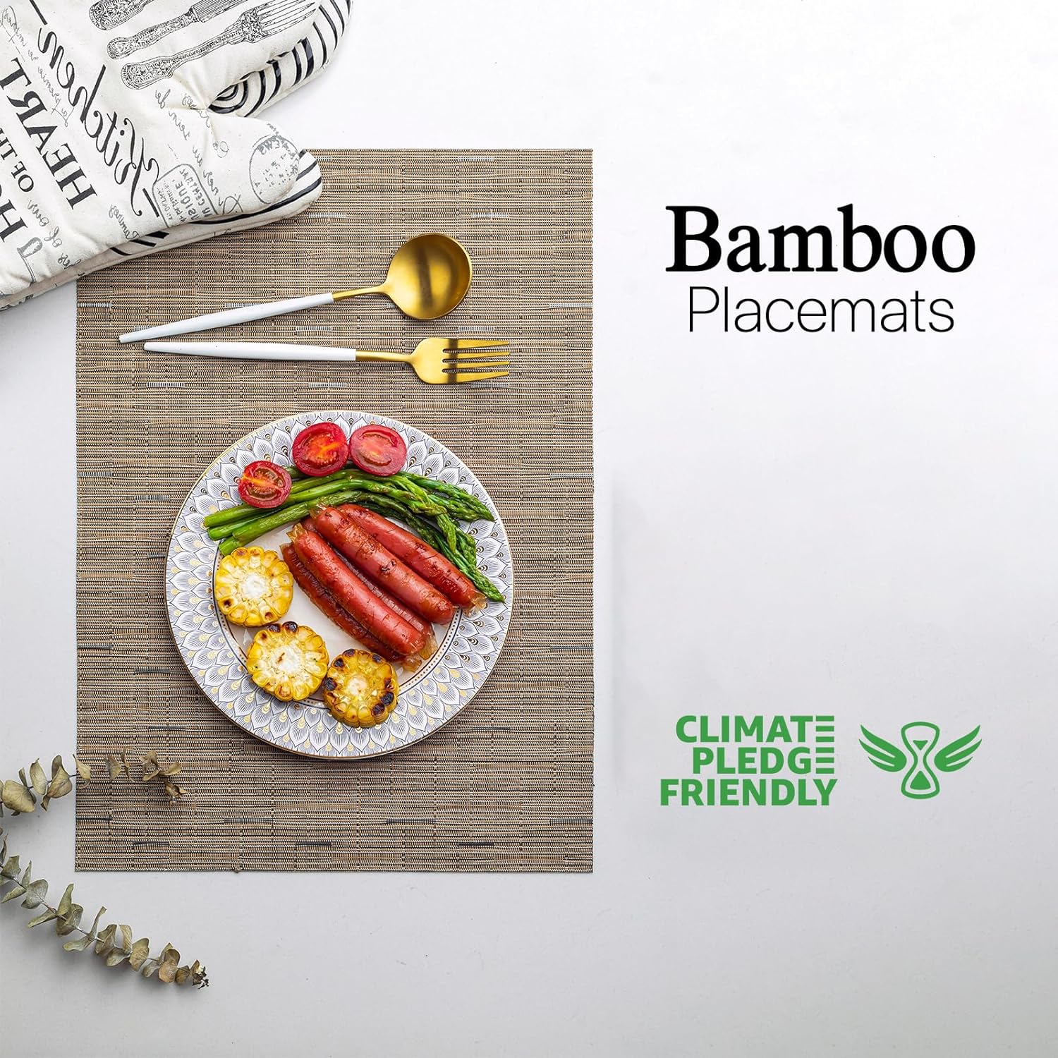 LEXMORE Placemats Set of 12 Vinyl/Plastic Woven Place Mats for Kitchen Table Indoor/Outdoor Washable Placemat Wipeable Dining Table Mats(Light Brown)