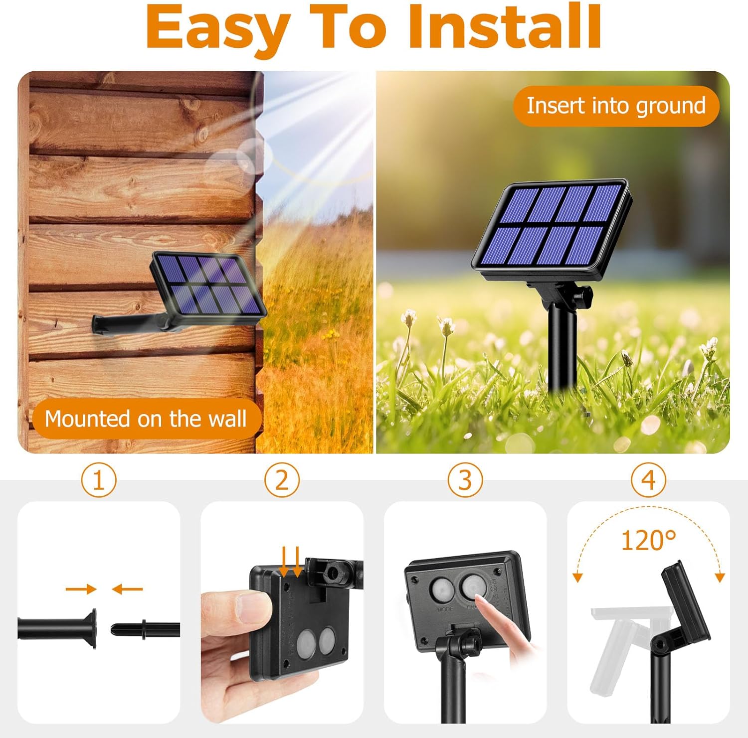 • 4 Packs Solar Halloween Lights Outdoor: Each Ultra-Bright fairy lights solar with 80 LED 33 FT (26.5 ft light string +6.5 ft lead wire), total 320 LED with orange & purple light beads, emitting a Spooky and wonderful light, creating an atmosphere of mystery and horror for Halloween party