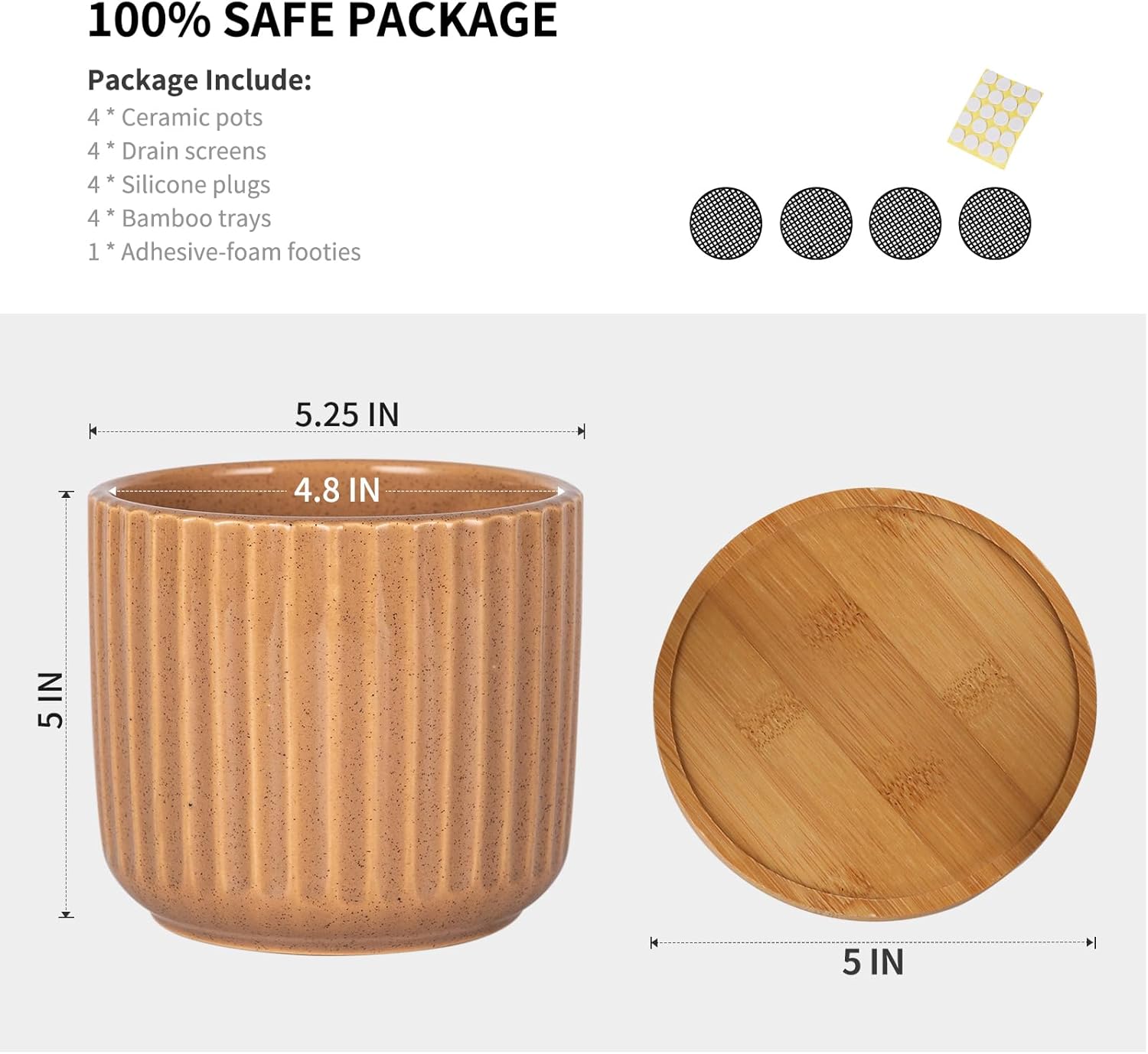 • Medium Size - 5.25" diameter x 5" height is a perfect size for many plants' thrive. Great for indoor plants, snake plants, succulent plants, flowers or a few artificial plants. (NOTE: Plants NOT Included, this product may be in 0.05 inches out.)