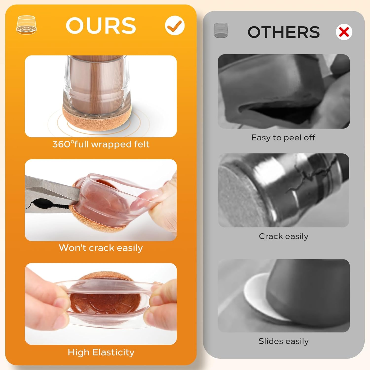 • Enhanced Felt & Wear Resistance- With a 360° fully enveloping felt bottom design and heightened felt thickness, engineered to accommodate various angles of slanted chair legs. Our chair leg floor protectors have a stretch, and elasticity which can maintain longer usage time.