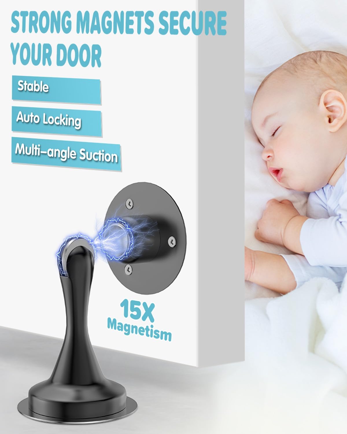 • [Enhanced Safety with Superior Magnetic Grip] Discover peace of mind with the HELEMAN Advanced Magnetic Door Stoppers, offered in a practical 2-pack. Designed to halt unexpected door slams from winds or accidental bumps, these stoppers serve as a discreet protector, keeping doors firmly open. Their soft-catch feature reduces noise and prevents damage to doors and walls, making them ideal for families with small children and pets by safeguarding against slamming doors