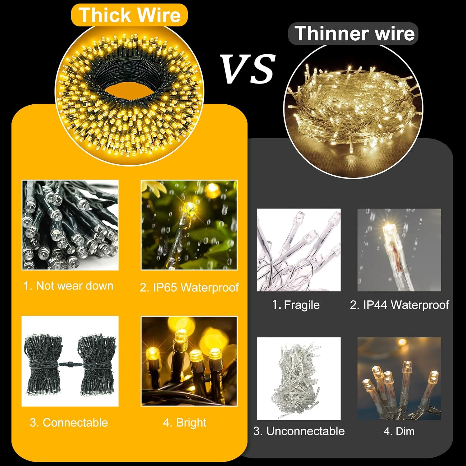 • 【Waterproof and Durable】: The plug in fairy lights made with high quality copper and plastic, which makes it stronger and more durable. IP65 Waterproof designed, resistant to weather changes and could withstand rain, snow and other bad weathers, ideal for year-round use. But please note that plug not waterproof.