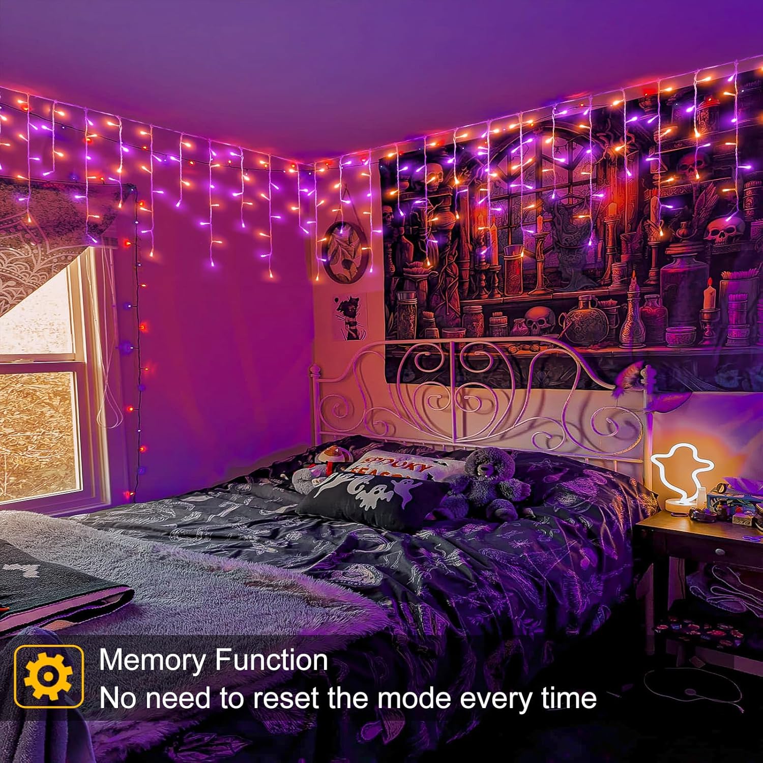 • Waterproof: The outdoor Halloween decorations is perfect for outdoor using, including heavy rain and snow. Sealed LED beads, thick gauge wire and coating all are IP44 waterproof, they make the outdoor icicle lights durable and worked great through the season. But please kindly note that the plug is not waterproof, please do some protection or keep them away from water.