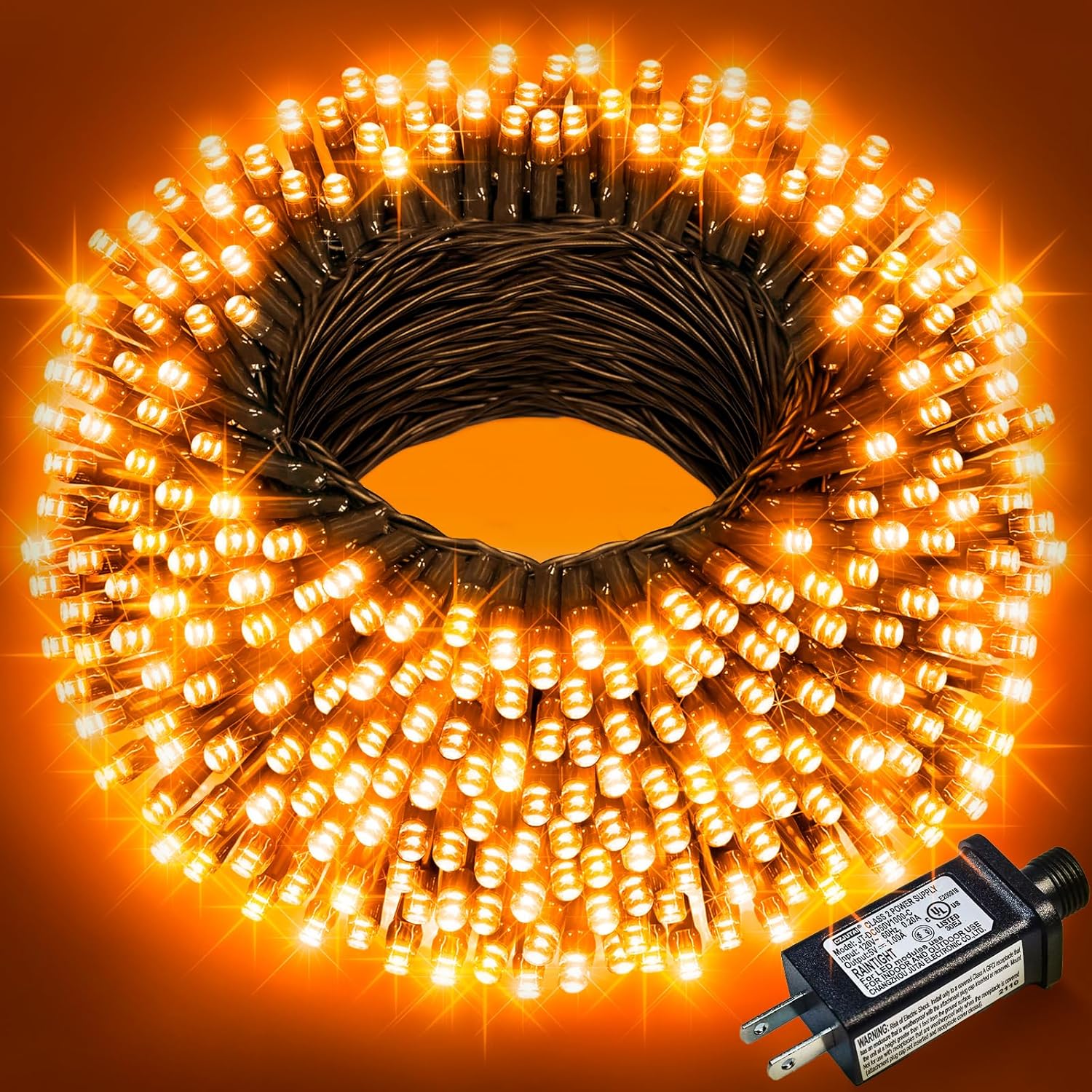 • 8 Lighting Modes: This orange Halloween lights has 8 lighting modes to fit different occasion and mood needs, including combination, in waves, sequential, slo-glo, chasing/flash, slow fade, twinkle/flash, steady on, adjust the lighting modes by pressing the round button on the adapter. The perfect ambient light for family gatherings and holiday celebrations.