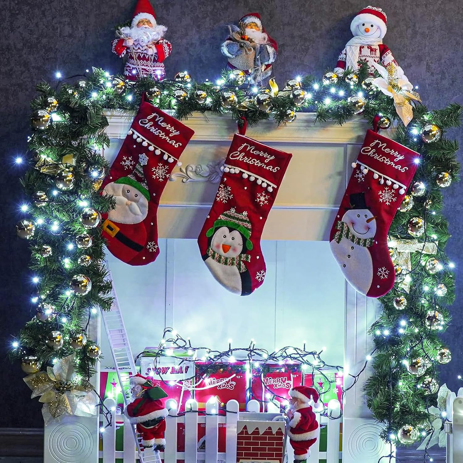 • 8 Lighting Modes: This white Christmas lights has 8 lighting modes to fit different occasion and mood needs, including combination, in waves, sequential, slo-glo, chasing/flash, slow fade, twinkle/flash, steady on, adjust the lighting modes by pressing the round button on the adapter. The perfect ambient light for family gatherings and holiday celebrations.