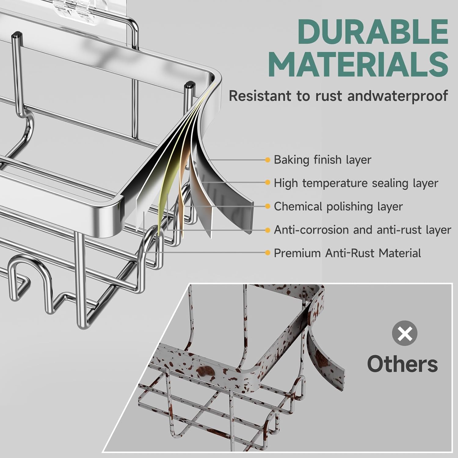 • Waterproof & Rust-Resistant: Designed for use in high-moisture areas, this caddy is made from rustproof and waterproof materials. It resists corrosion over time, keeping your shower organization solution looking pristine in damp environments.