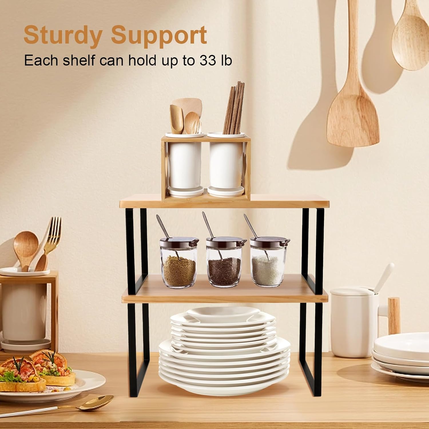 • Durable Solid Wood Construction: Constructed from premium thick solid wood, this kitchen cabinet organizer is built to withstand heavy loads and everyday use, providing a reliable storage solution for your pantry or cabinet.